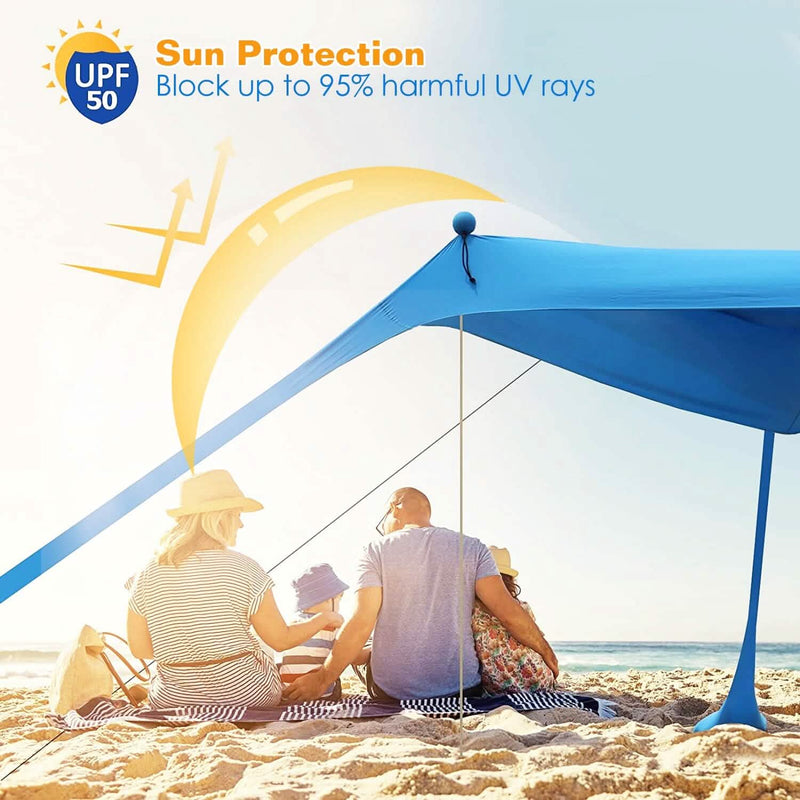 Constructed from advanced Lycra fabric, the tent offers UPF 50+ sun protection, effectively shielding you and your loved ones from harmful UV rays and reducing sunburn risks. Its durable, tear-resistant material ensures long-lasting performance even in challenging weather conditions.