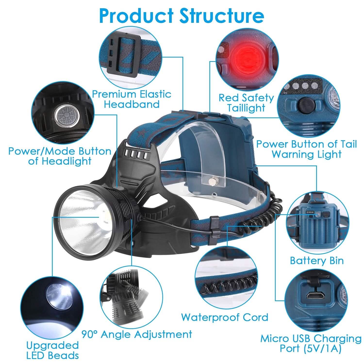 - Ultra-brightness LED Beads: Built-in advanced P70 LED chips, brighter and stronger, provide you high brightness, illuminate the way for you up to 1640ft. Tail red warning light renders you much more safety when you riding bike in pitch darkness.