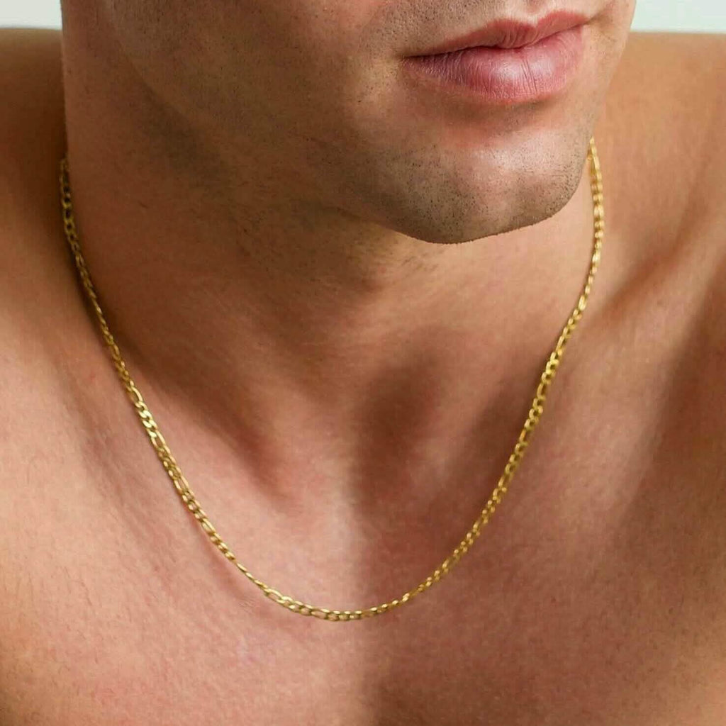 10K Solid Gold 3MM Italian Figaro Chain Link Pendant Necklace