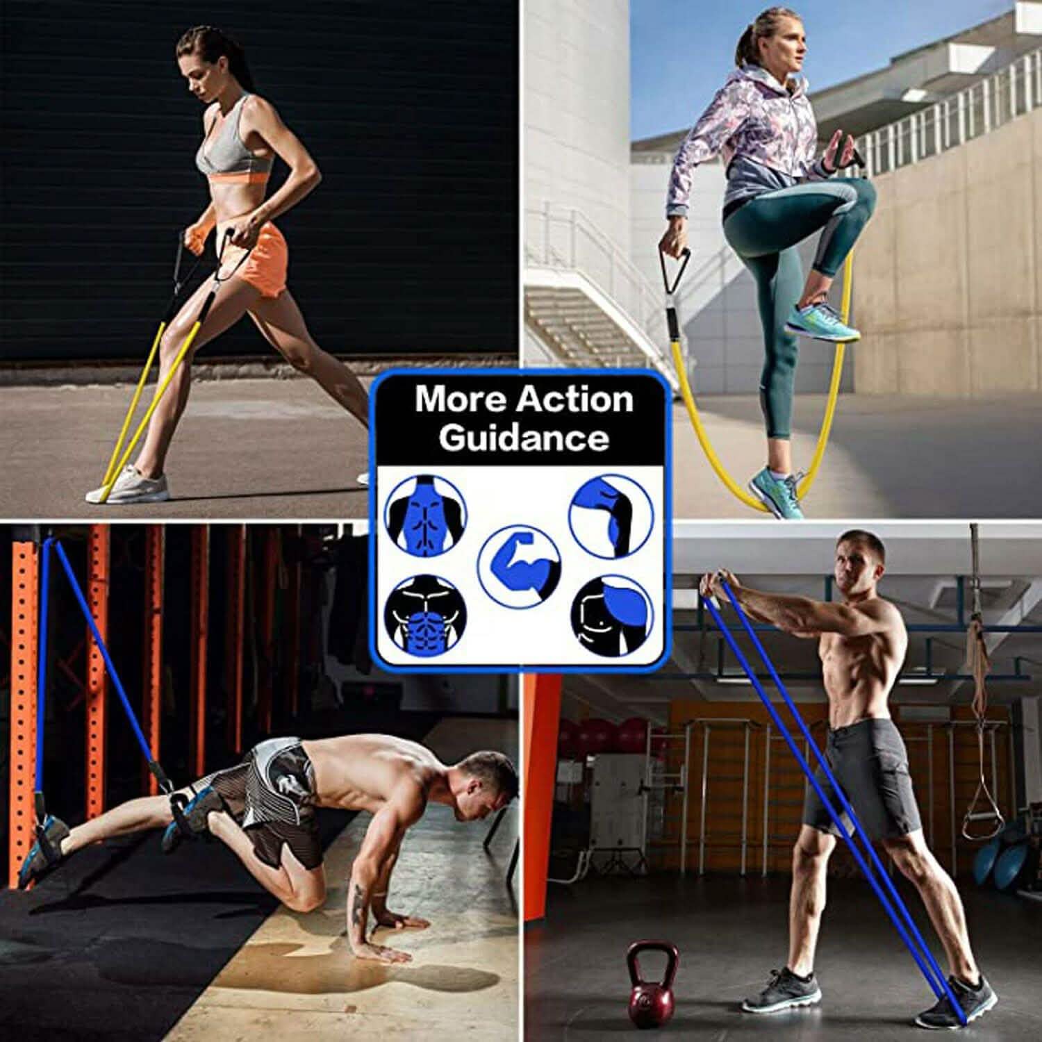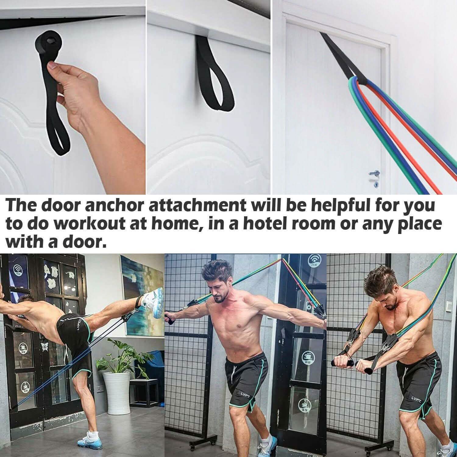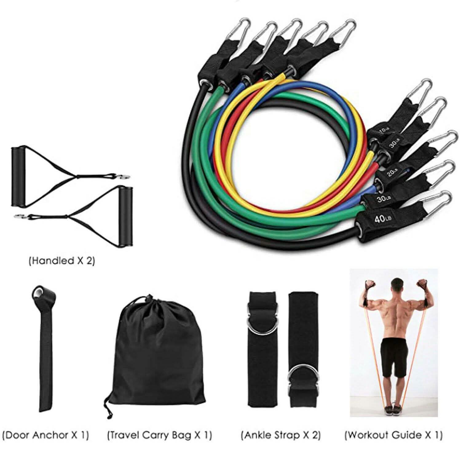 - Package Includes: 5 Exercise Bands, 2 Cushioned Handles, 2 Ankle Straps, 1 Door Anchor, 1 User Manual, and 1 Carry bag.