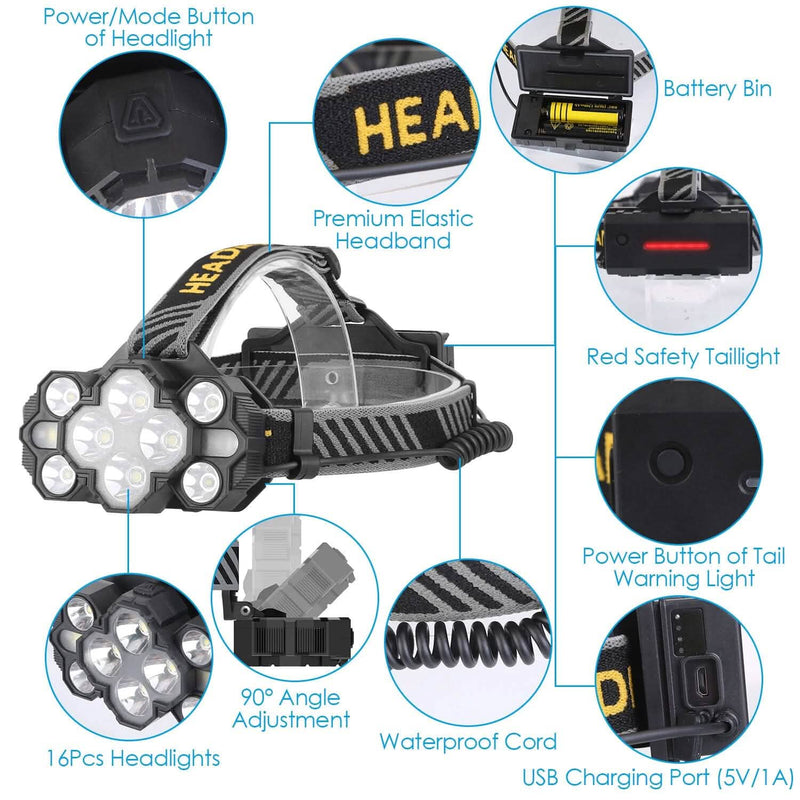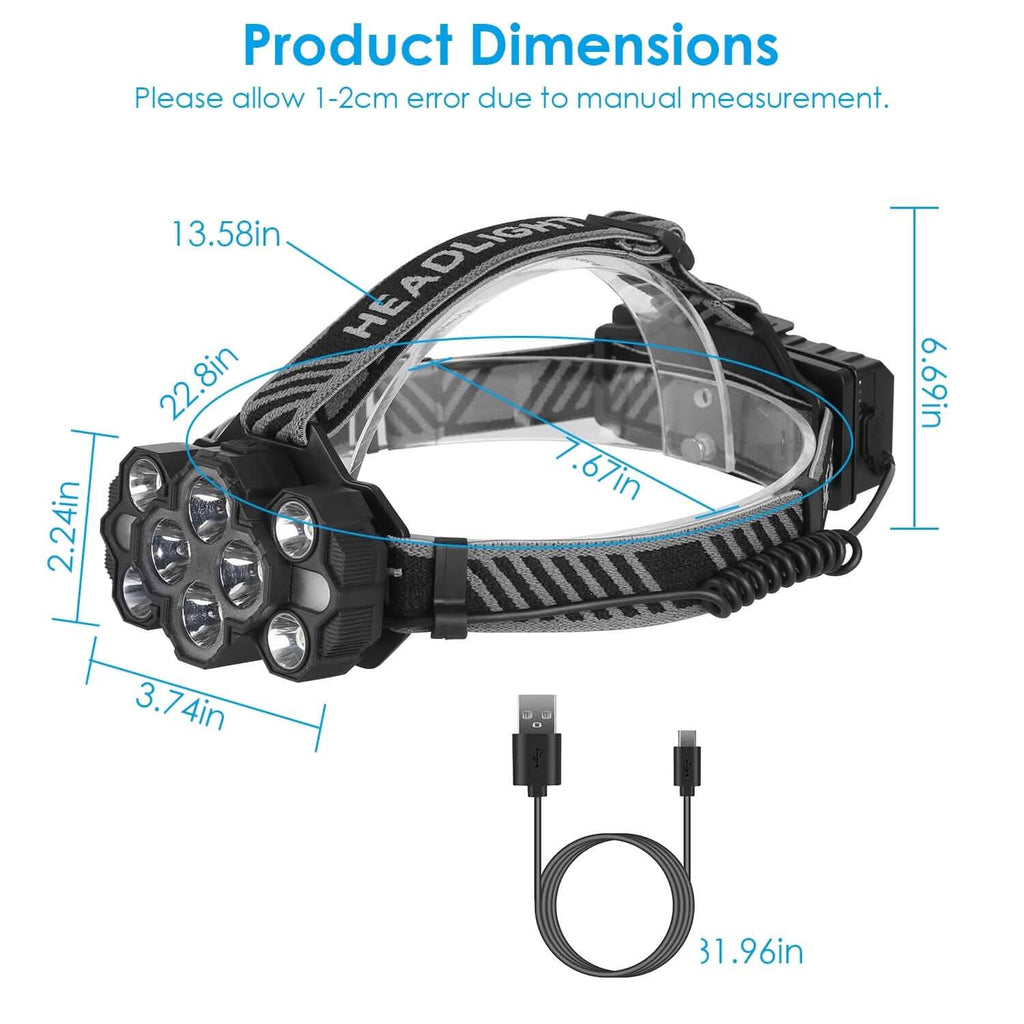 20000LM LED Headlamp 8 Lighting Modes Rechargeable