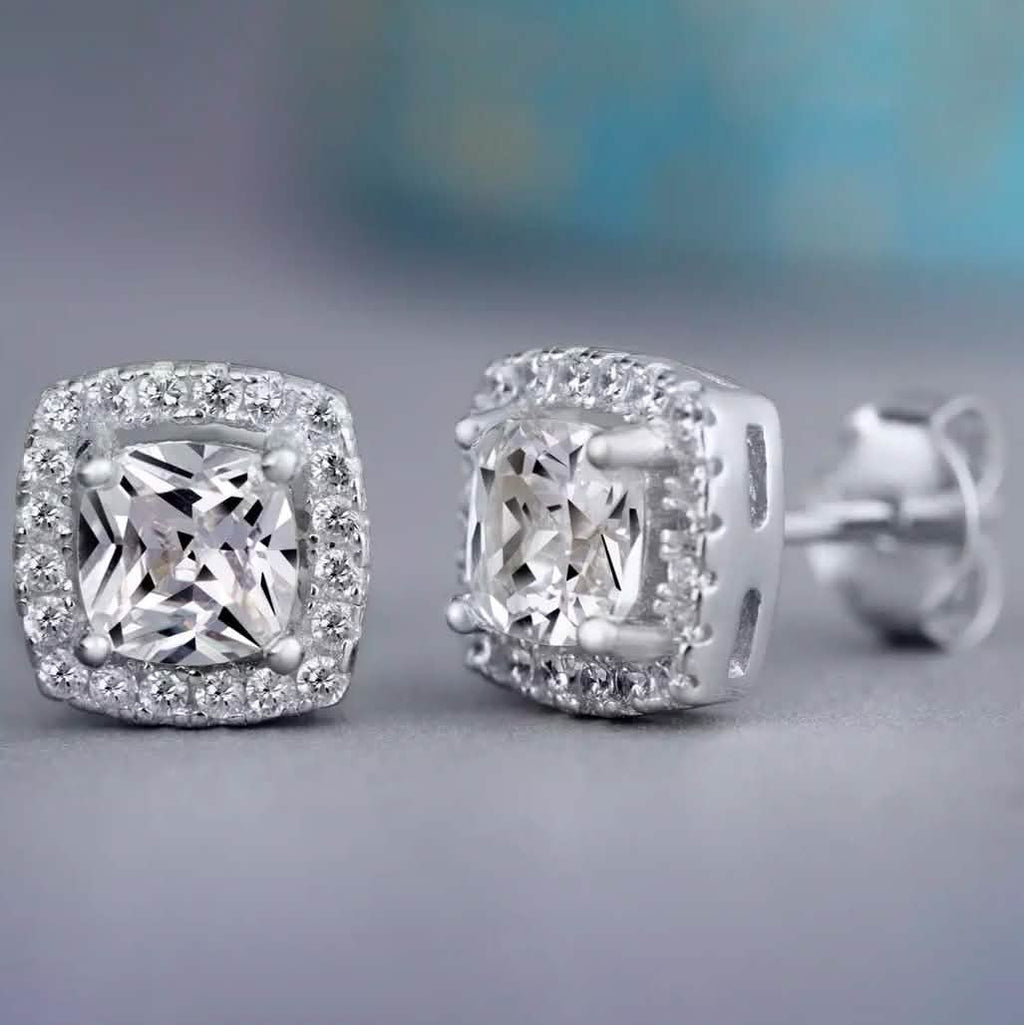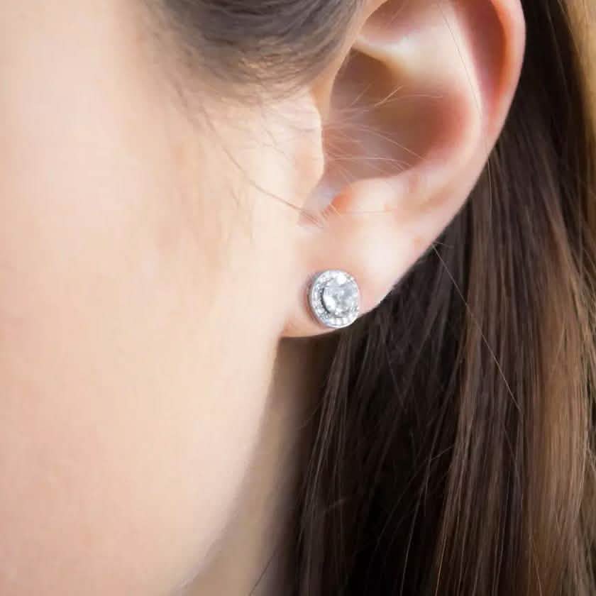 3.44 CTTW Halo Stud Earrings with Swarovski Elements