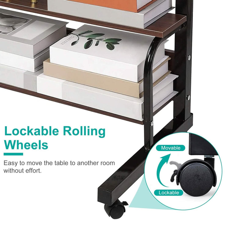 When you work in the bedroom or watch TV in the living room, this end table is a good helper to place your laptop, drink or snack by the bed or couch! C-Shaped design makes the table easily hug the side of your sofa/chair for perfect match. Its 3-tier shelves allow you to store your books, magazines or other items easily up to 55lbs and keep your room orderly and tidy. Besides, the table with rolling wheels can be adjusted from 26in to 35in according to your need and can be moved to another room simply without effort. Great for home usage!