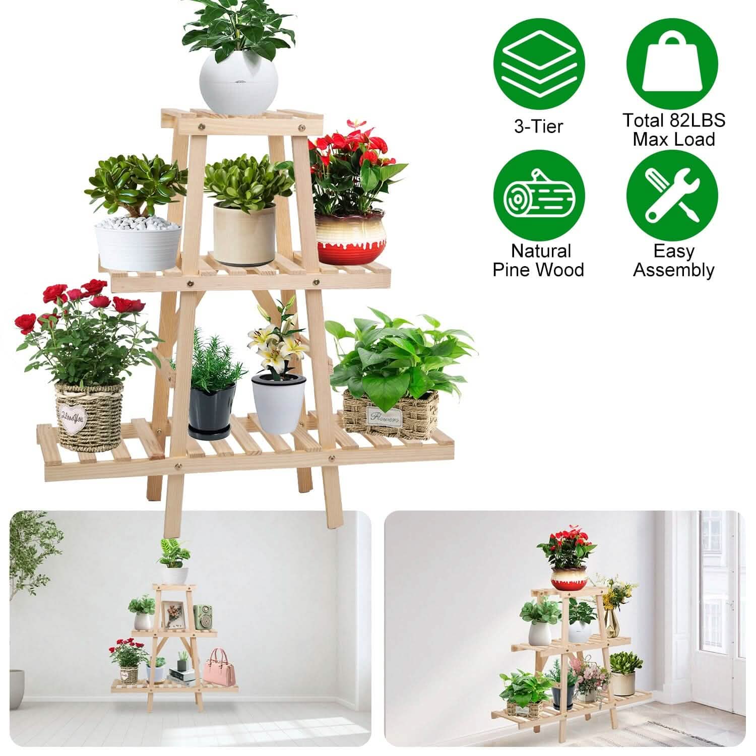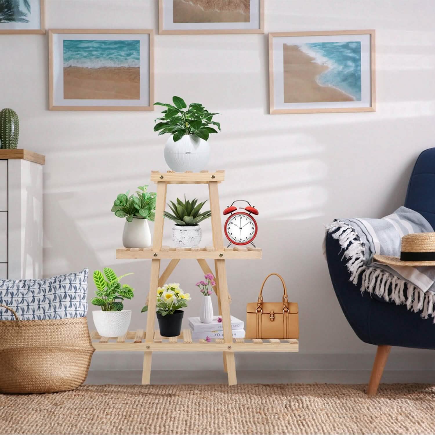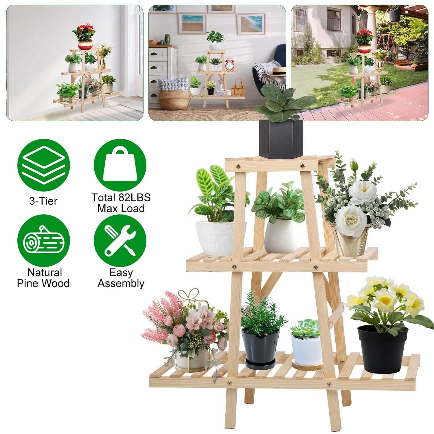 3-Tier Potted Flower Shelf Multi-tier Flower Pot Rack Holder Triangle Ladder