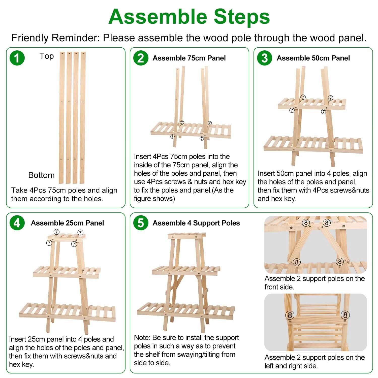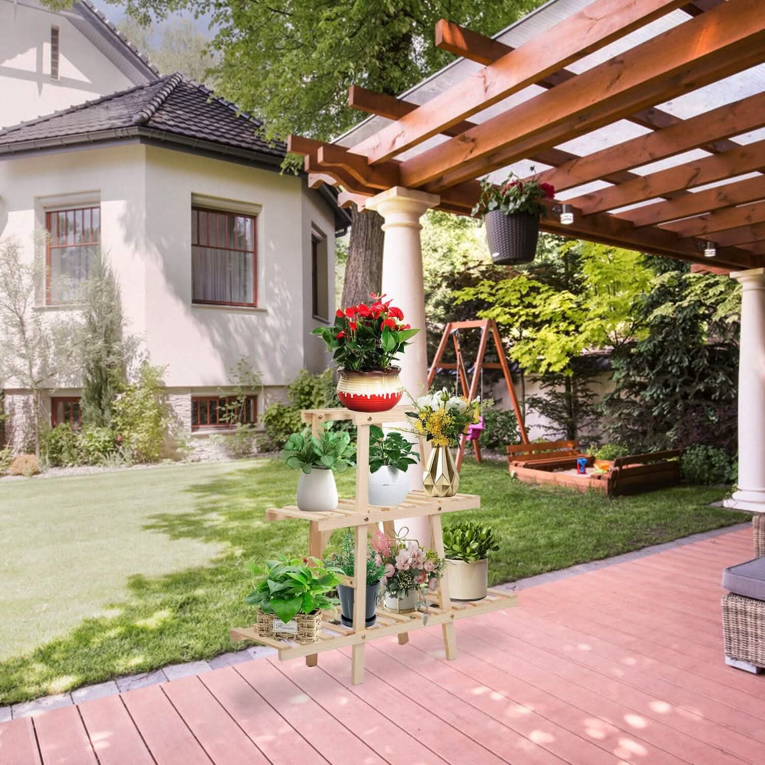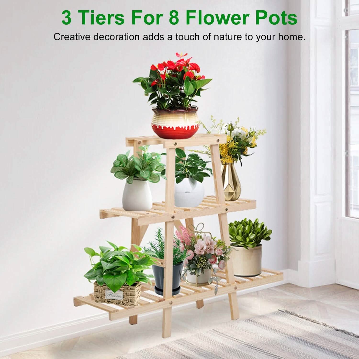 3-Tier Potted Flower Shelf Multi-tier Flower Pot Rack Holder Triangle Ladder