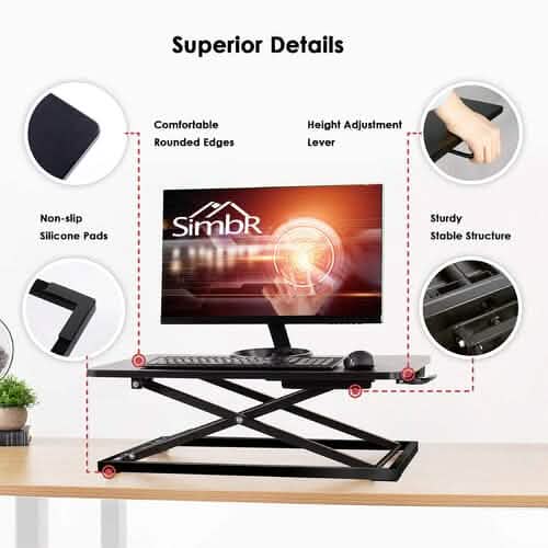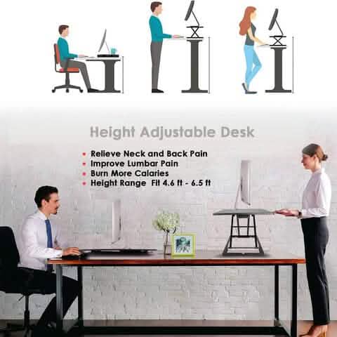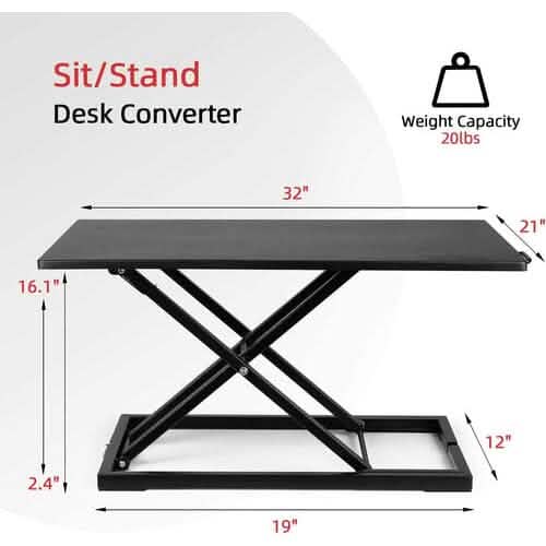 32" Height Adjustable Stand Up Desk Converter Gas Spring Desk Riser Converter Sit to Stand