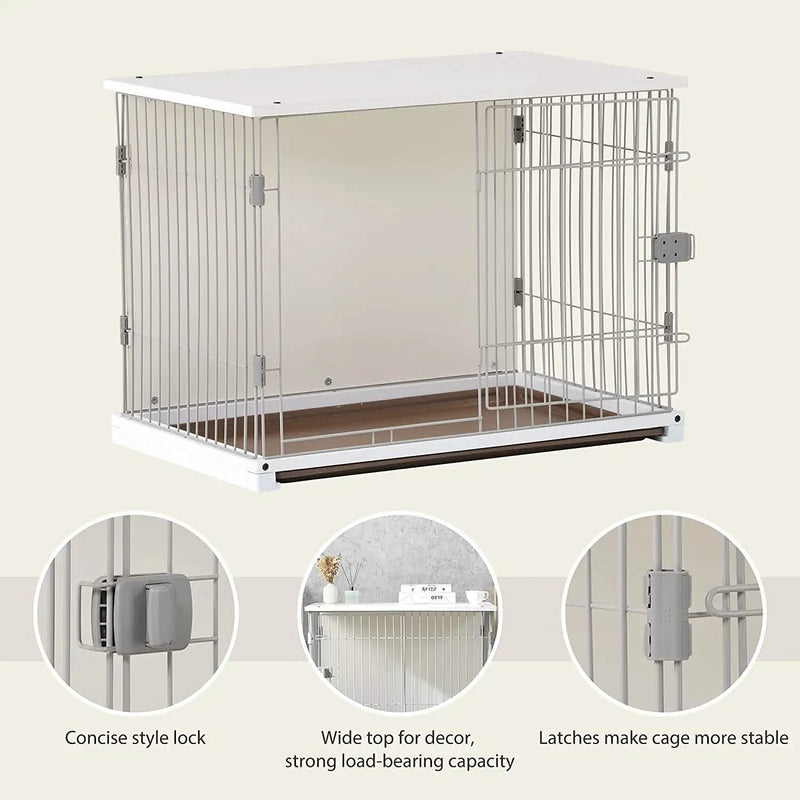 - FUNCTIONAL FURNITURE: This elegant dog cage features a wire-panel construction with a large, spacious table top that doubles as a side table, coffee table or bedside table to display vases, photo albums and more. Can also be used as a home for pets. The classic white makes it an elegant interior decoration.