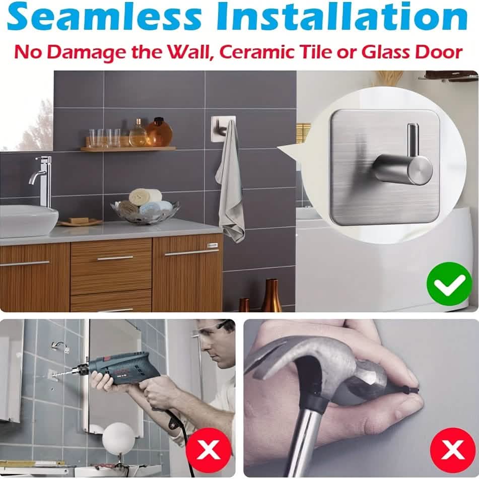 4-Pack Heavy Duty Stick Hooks – Stainless Steel, Waterproof, Wall Mount