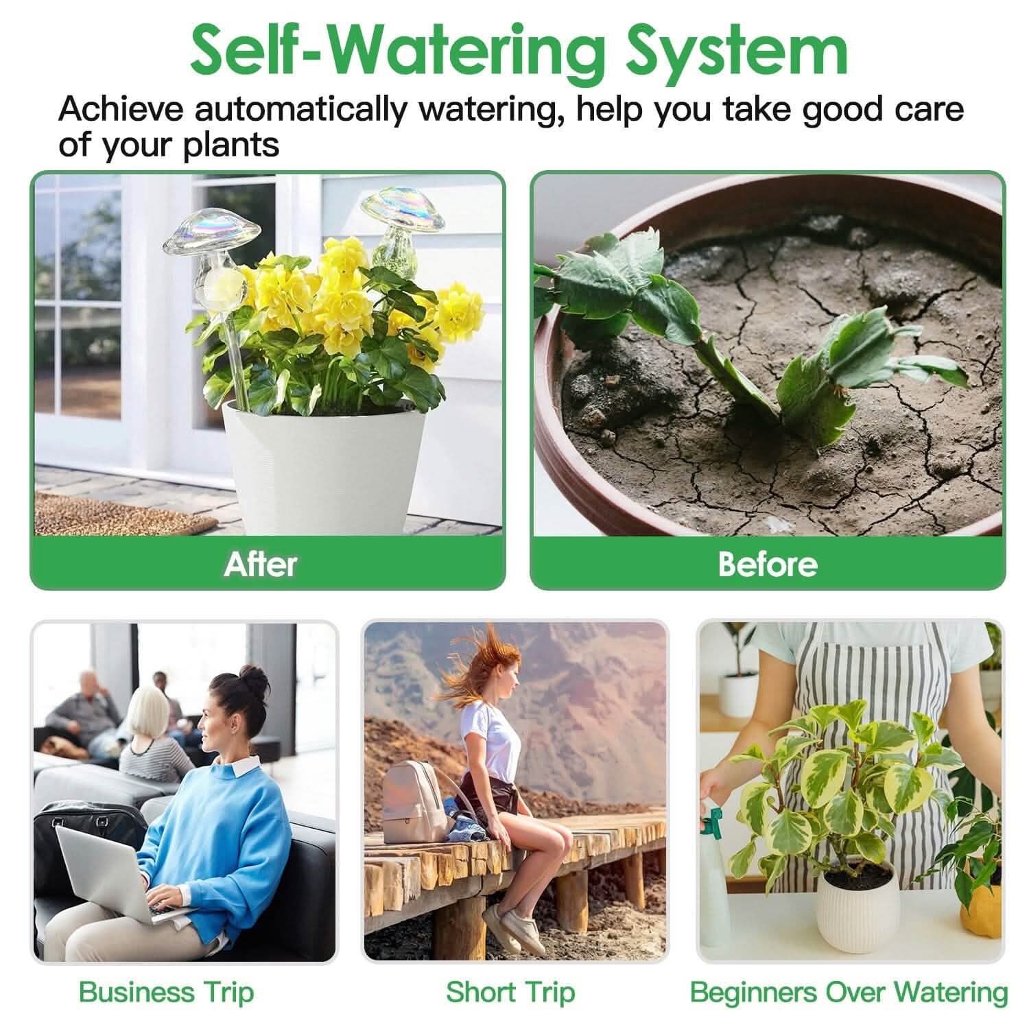 - Cute Mushroom Appearance: Different from other incongruous and botchy watering spikes, our cute self-watering globes are featured with lovely mushroom shape, which will definitely match your beautiful and attractive flowers and plants as decoration, adding some fairy and romantic atmosphere to your house.