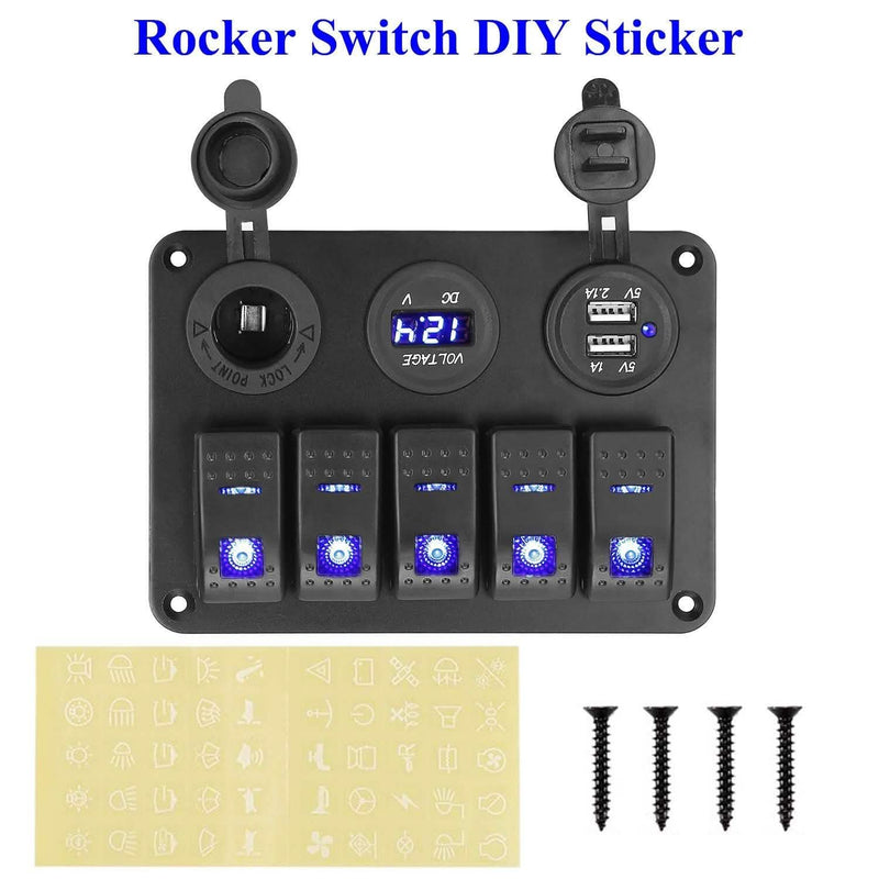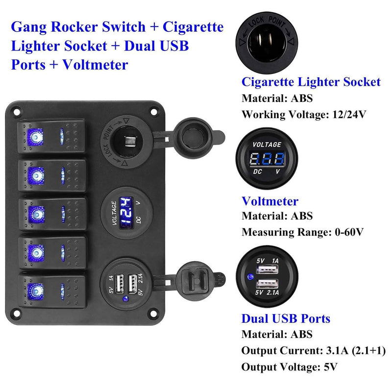 - Multifunctional: Features with 5 gang rocker switches, cigarette lighter outlet, dual USB ports and LED digital display, which can meet your machine and charge anytime.