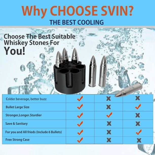 6-Piece Set: Whiskey Bullets Stainless Steel with Base