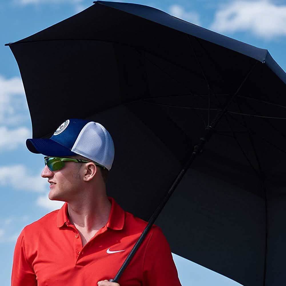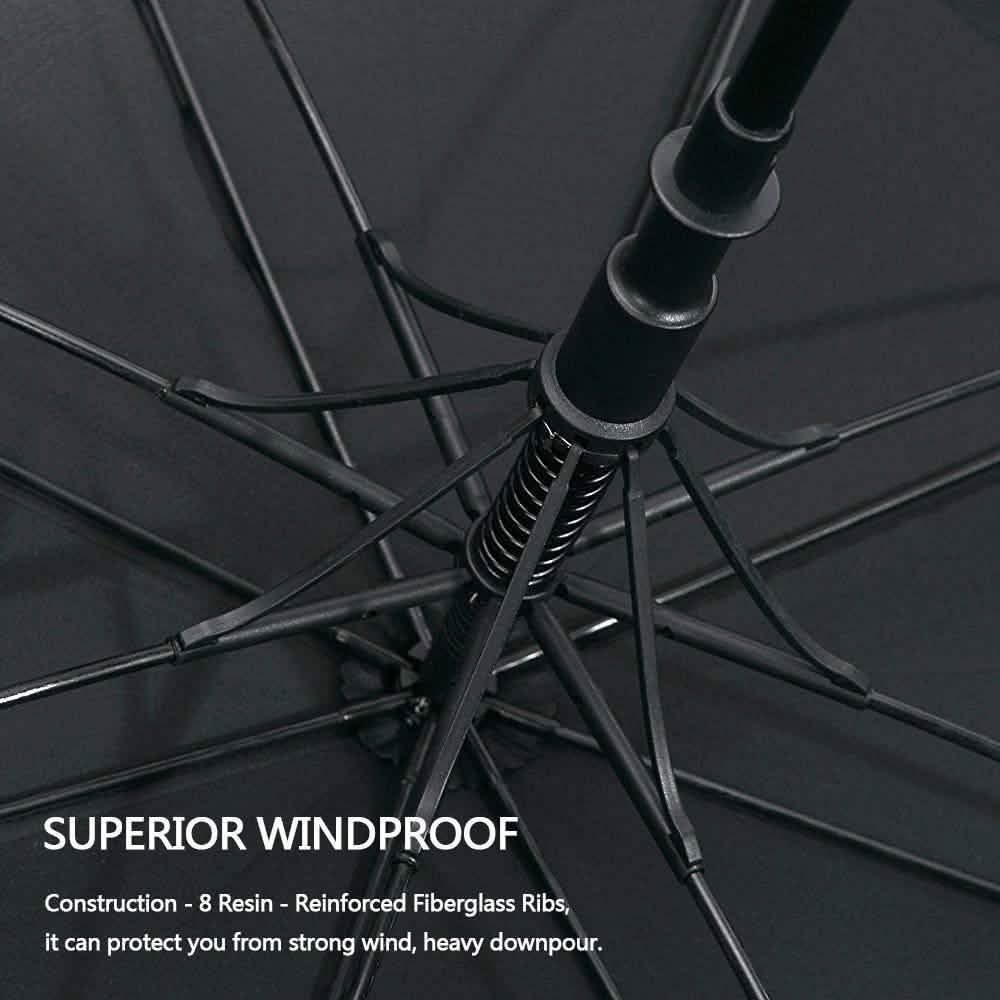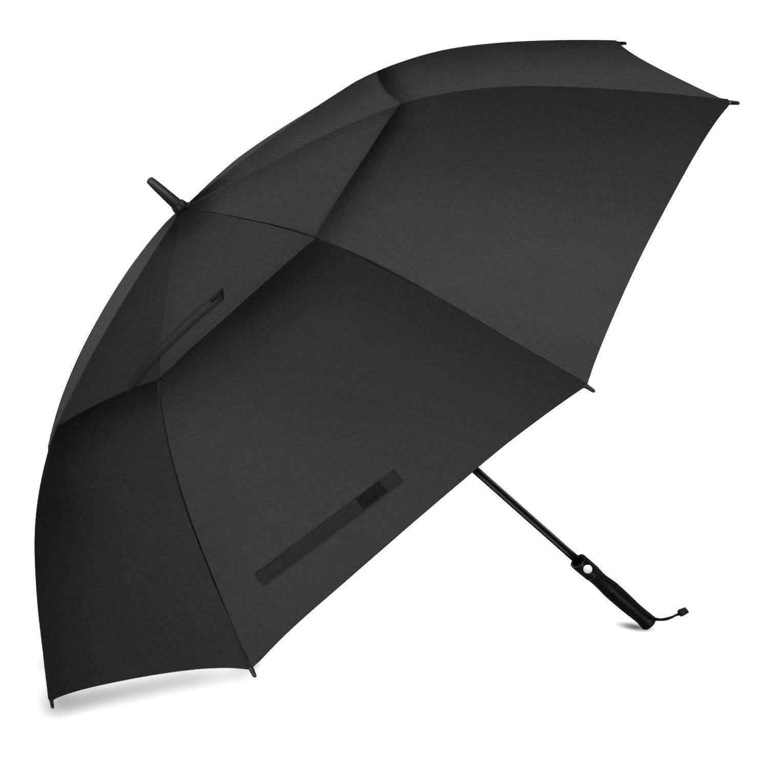 - This Golf Umbrella: With a 68-inch oversize canopy and heavy duty design is an ideal companion for golfers, the business professional or for daily life. This automatic open golf umbrella with a vented double canopy. With eight folding frames of umbrella in all fiber and 68 inches size, it can well withstand work and weather conditions, especially under wind or rain situations. Therefore, there is no need to be anxious that the umbrella will be blown inside out and a large area can be covered.
