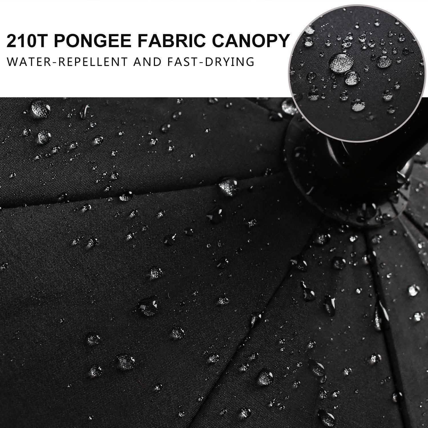 - Waterproof, Sun proof & Durable The umbrella cloth is 210T Pongee, which is proved to be more durable and waterproof, more importantly, it can be quickly dried off. So it's quite remarkable and very effective. In addition, it is coated with a layer of high-tech black glue which no doubt serves to block 99 % UV rays.