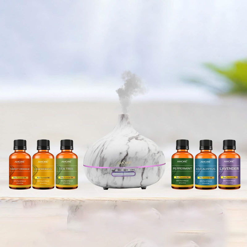 7-Pack: Ultrasonic White Marble Aromatherapy Oil Diffuser With Essential Oil