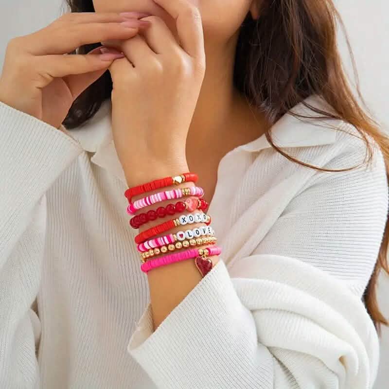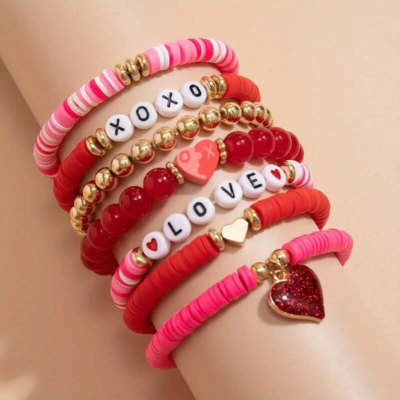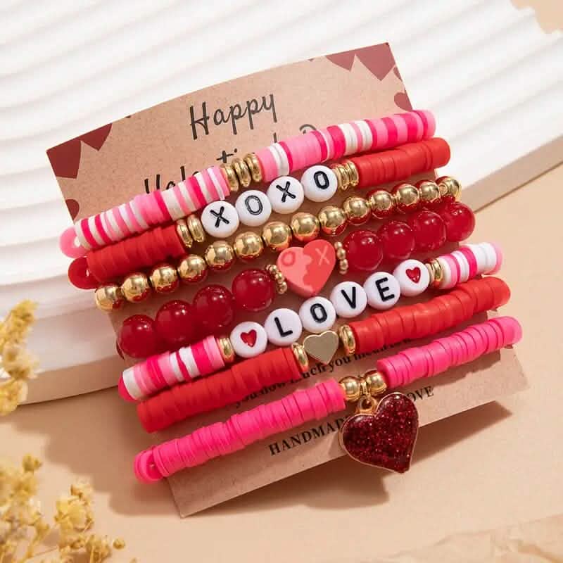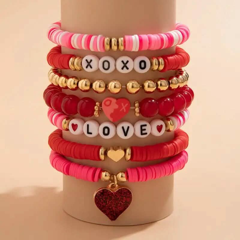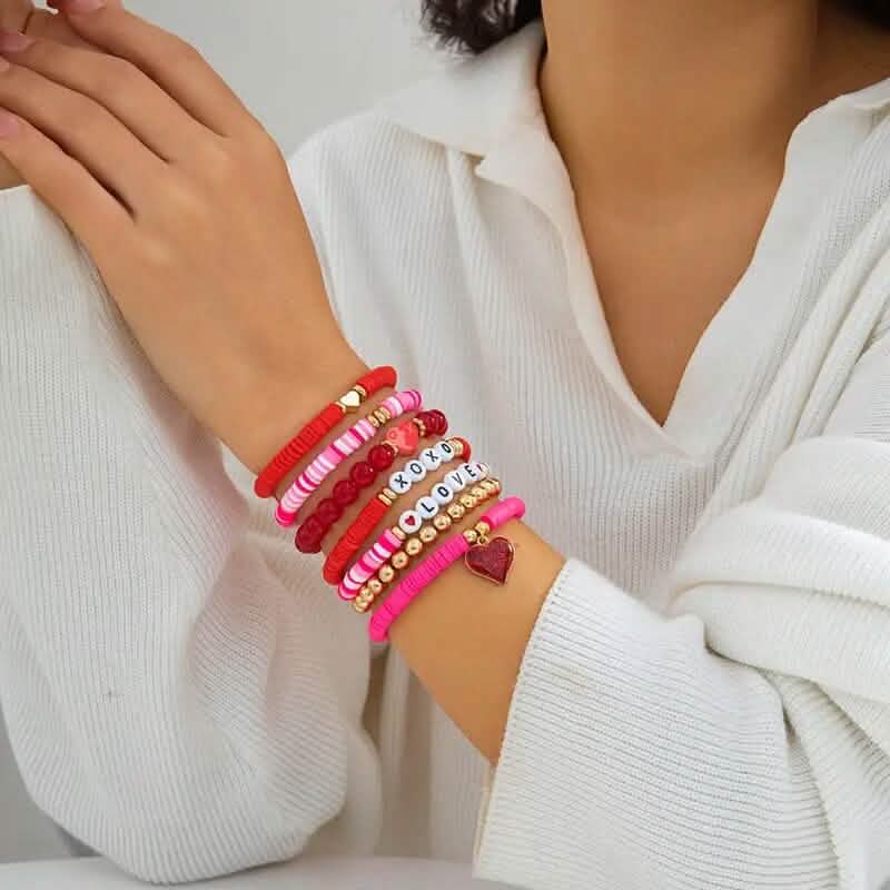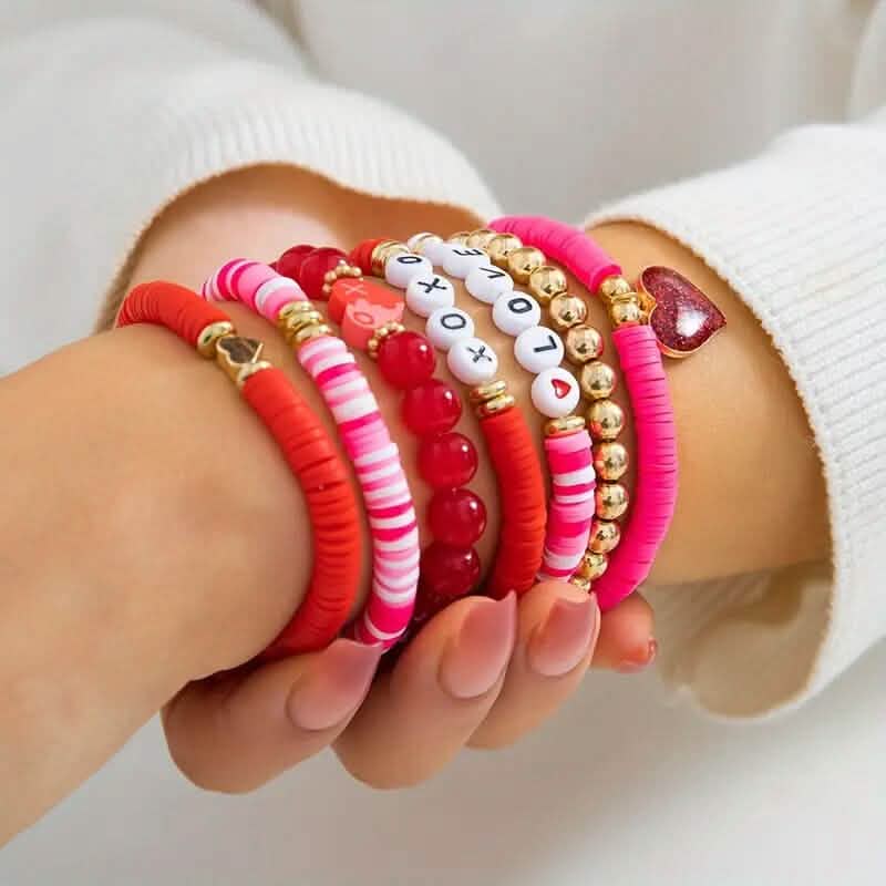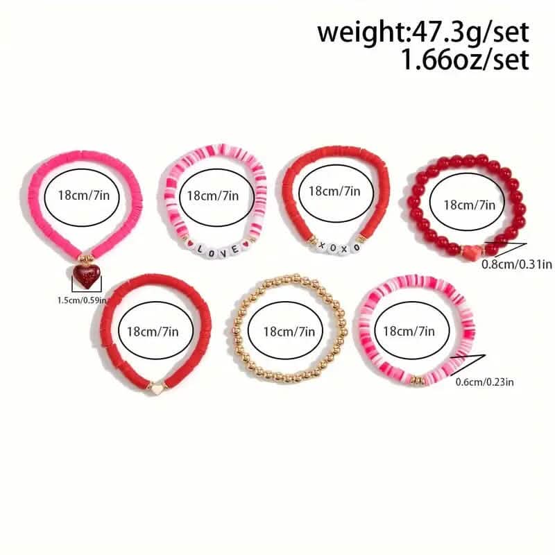 7-Pieces: Fashionable Cute Cartoon Love Heart Charms Pendant Bracelets