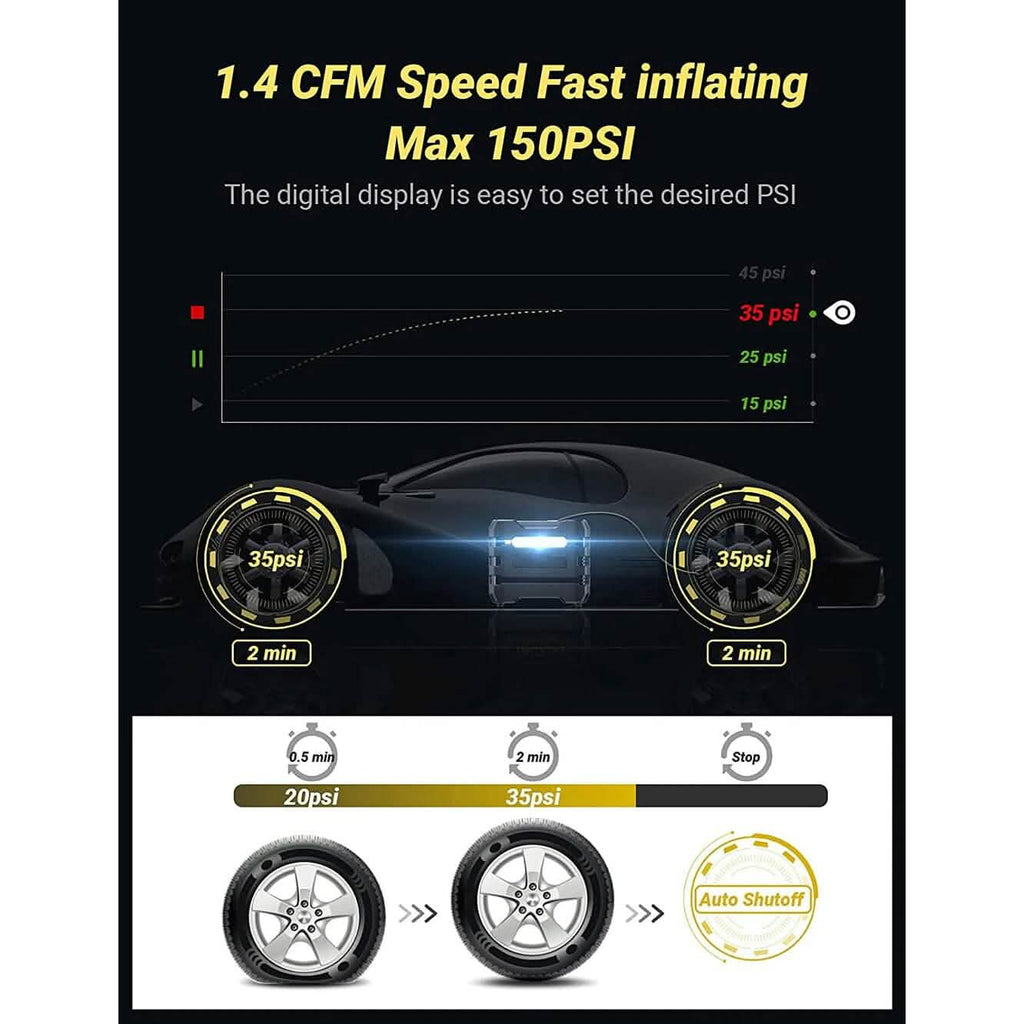 A6 Car Tire Inflator 12V DC Air Compressor Portable Multifunctional Tire Pump 3 LED Lights