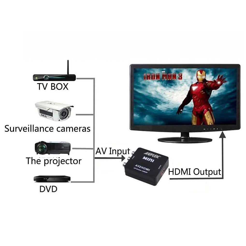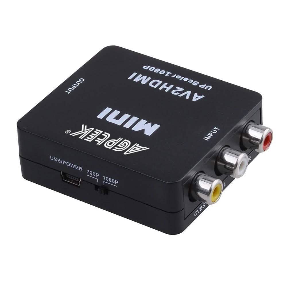 If you want to use your DVD, VCR, camcorder, or game system with RCA outputs with your new HDTV or HDMI monitor, this converter may be what you need. Simply plug standard composite AV cables (yellow, red, and white) into the input port of the converter, and then connect an HDMI cable from the converter to your TV. Enjoy this practical and simple device, which is easily concealable yet capable of delivering high-definition images. This converter works great with either 720p or 1080p TVs, and the output mode is easily selectable with a switch on the device. This converter’s advanced processing IC allows you to get the clearest picture quality possible with optimal color and detail reproduction. Both video and audio are integrated into the HDMI output, providing an all, one-cable solution to your HDTV or monitor.