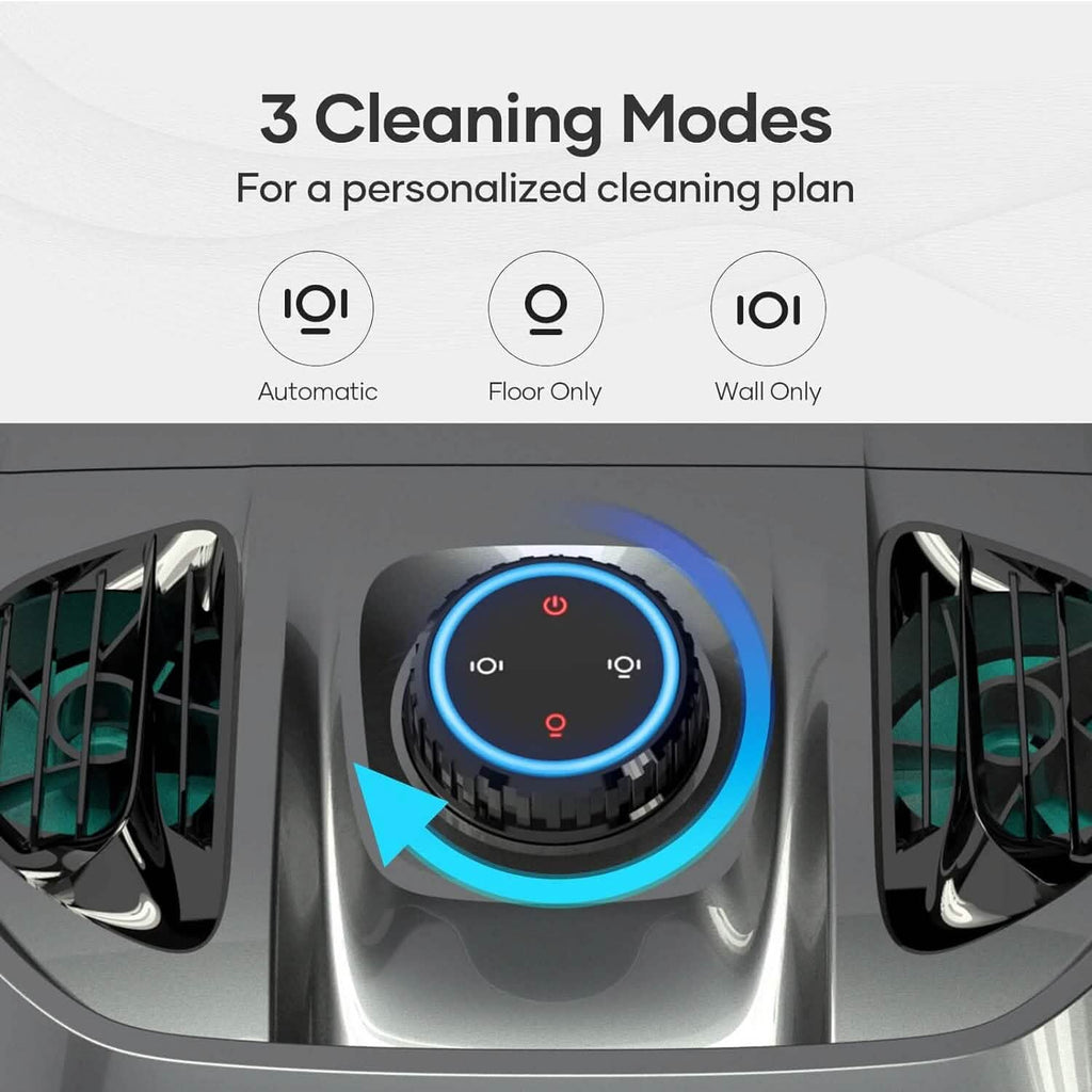 - Clean the Floor, Wall and Waterline: Equipped with 4-Wheel Drive system, the pool cleaner can climb your pool wall effortlessly and scrub the waterline effectively. Three modes of cleaning allow you to control your clean and target those pesky trouble spots in your pool.