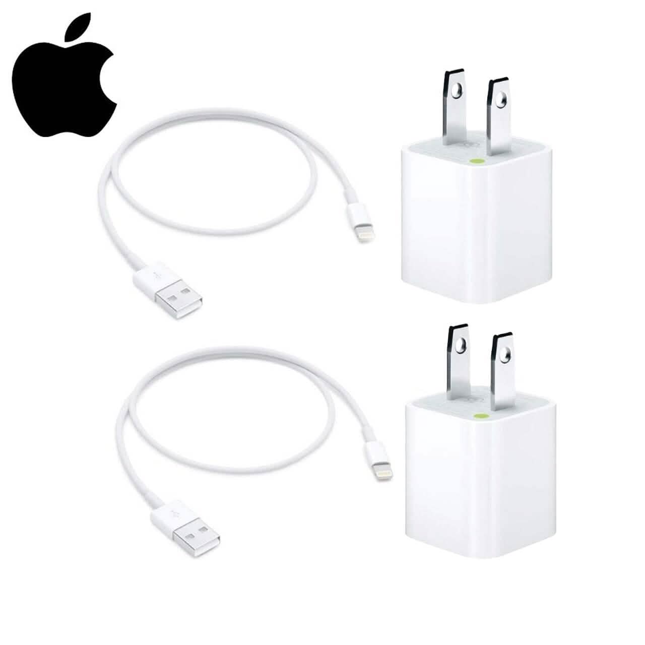 2 Pack Apple Original 5W USB Power Adapter and 2 Pack Apple OEM Lighting to USB Cable (3.3 ft)