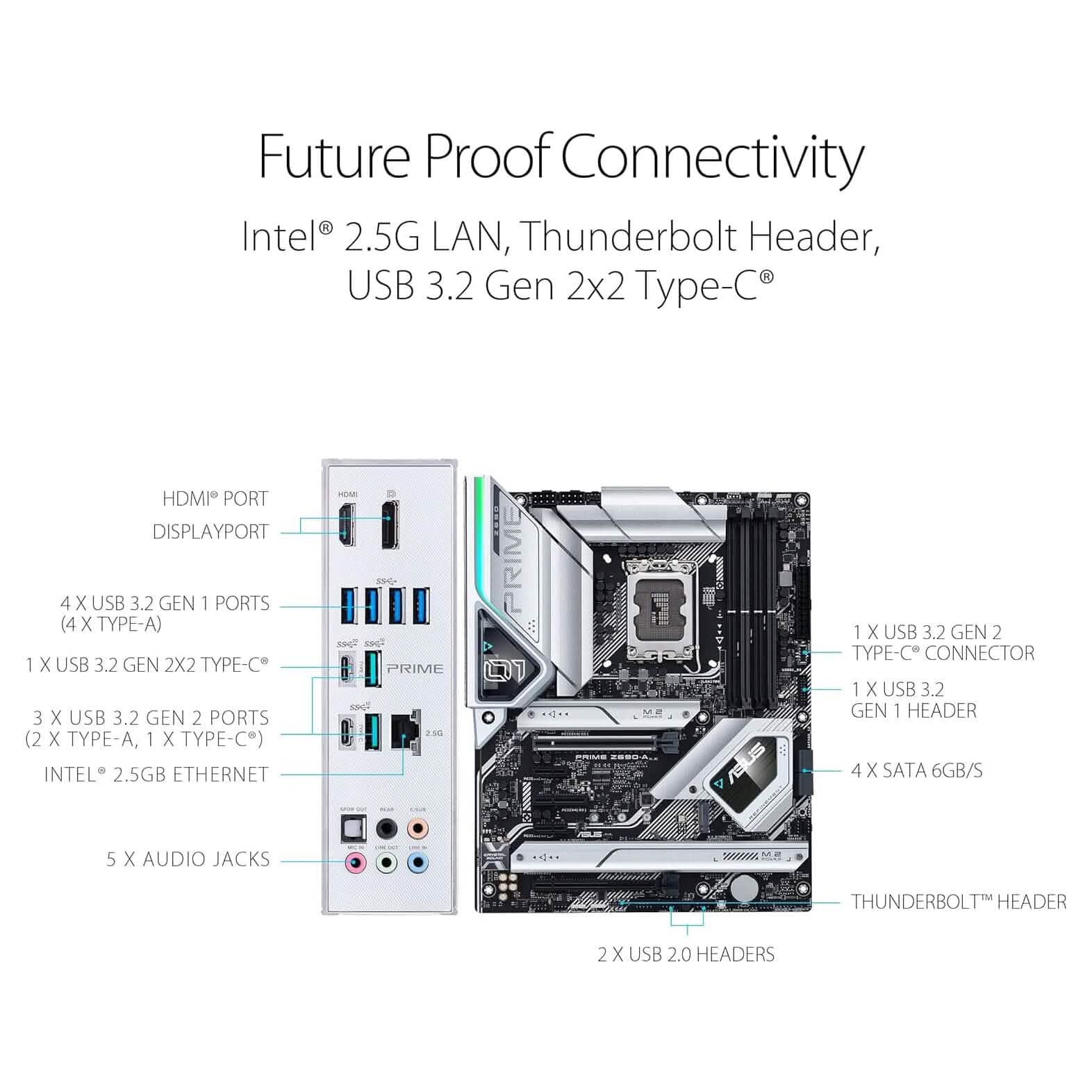 - Next-gen connectivity: DDR5 memory, PCIe 5.0, Intel 2.5 Gb Ethernet, USB 3.2 Gen2x2 Type-C, front panel USB 3.2 Gen 2 Type-C, Thunderbolt 4 header support