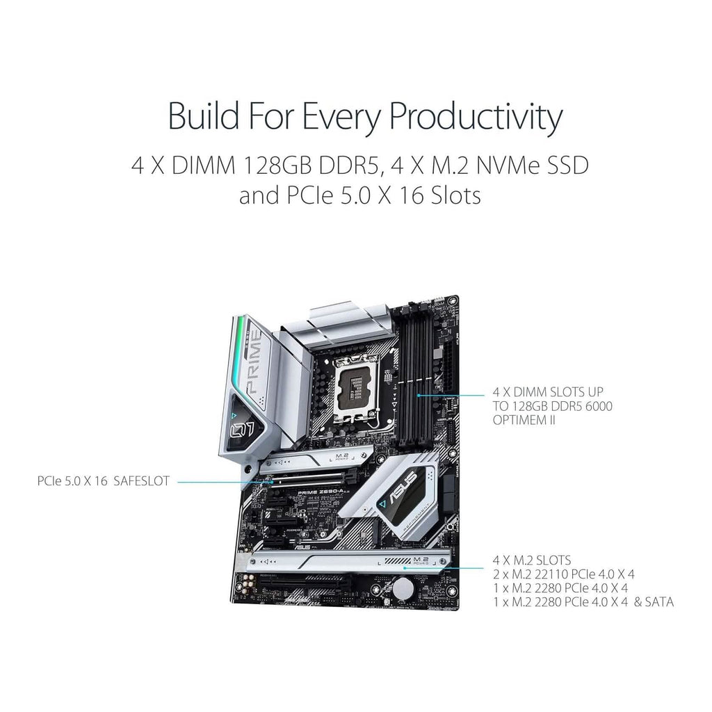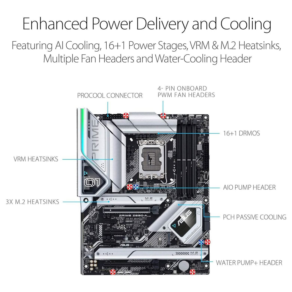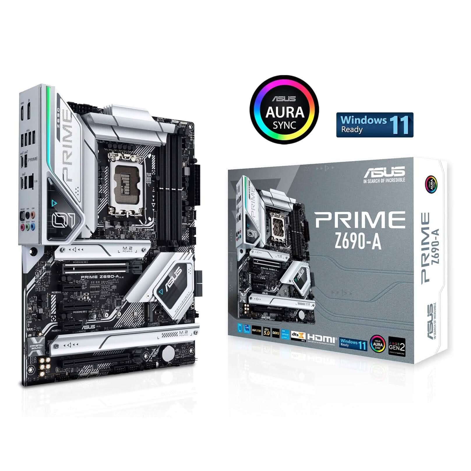 The ASUS Prime Z690-A is expertly engineered to unleash the full potential of 12th Gen Intel Core processors. Boasting a robust power design, comprehensive cooling solutions and intelligent tuning options, the ASUS Prime Z690-A provides daily users and DIY PC builders a range of performance tuning options via intuitive software and firmware features.ASUS Prime Z690-A is perfect for those seeking to create a sleek, futuristic-looking build, thanks to its black and white finish and iridescent metallic nameplate and PCB cover.