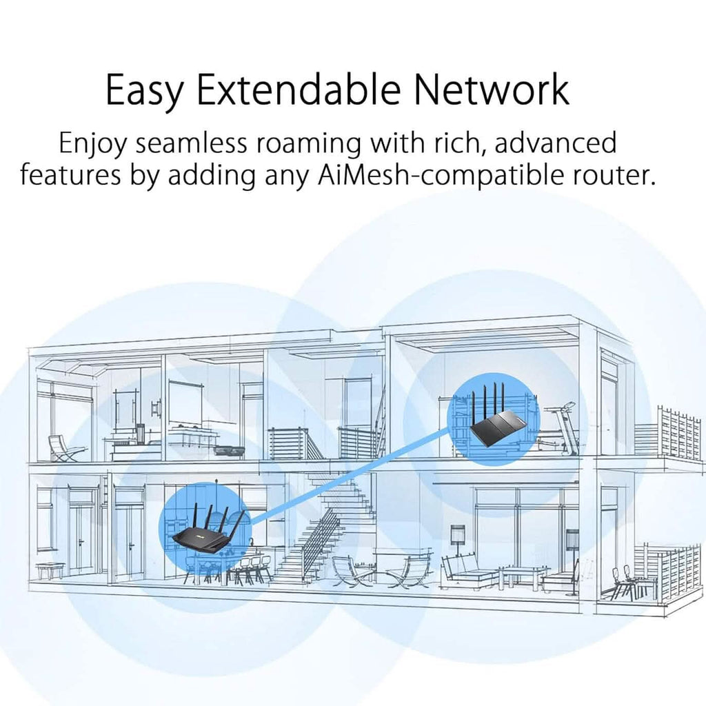 - Easy Extendable Network – Enjoy seamless roaming with rich, advanced features by adding any AiMesh-compatible router.
