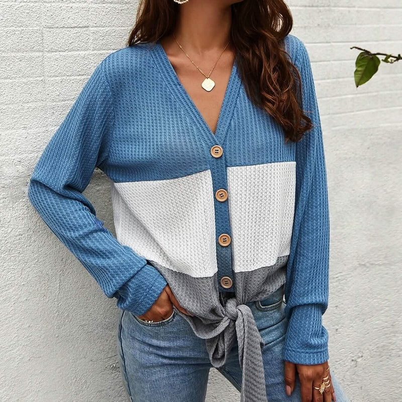 Cut And Sew Panel Knot Hem Waffle Knit Tee