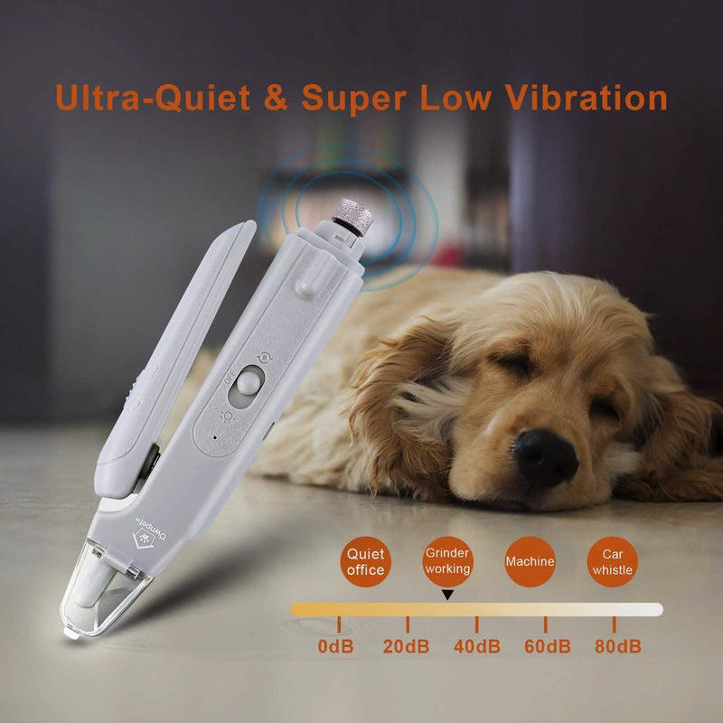 - Sharp & Low Noise: Stainless steel blade makes nail clipping super easy. The diamond grinding wheel provides smooth, swift grinding to pet nails with very little vibration. A nail clipper working at 40 db can keep your dog calm.