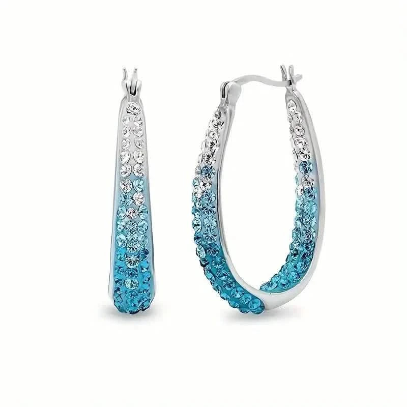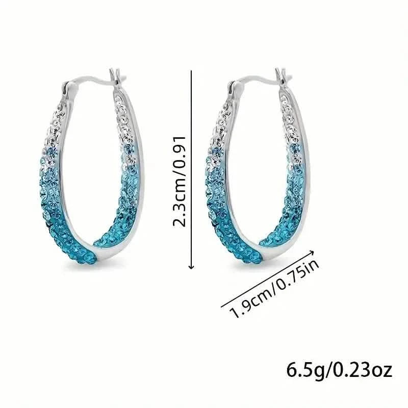 Experience the perfect blend of elegance and playfulness with these gorgeous earrings. Their unique design and premium craftsmanship make them an excellent choice for personal wear or as a thoughtful gift. Don't miss the chance to add these eye-catching Elegant Dual Tone Gradient Glitter Hoop Earrings to your jewelry collection—order now and elevate your style effortlessly!