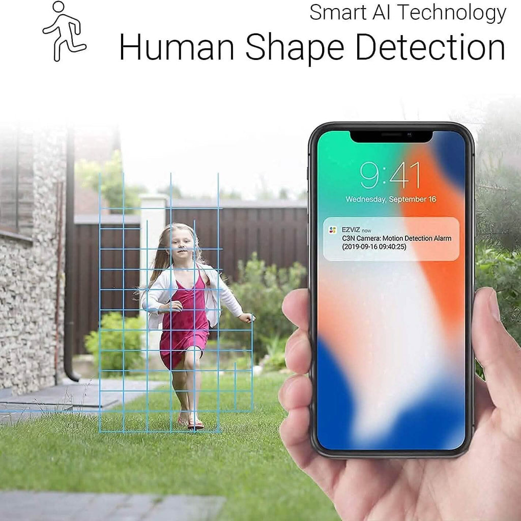 - Smart Spotlight Color Night Vision: C3N can actively monitor in the dark in black and white, and automatically turn on spotlights and color night vision when human movement is detected. Select between three modes on the EZVIZ APP: Full black and white night vision (spotlights off), full color night vision (spotlights on), and smart color night vision (spotlights auto activate when human movement is detected).