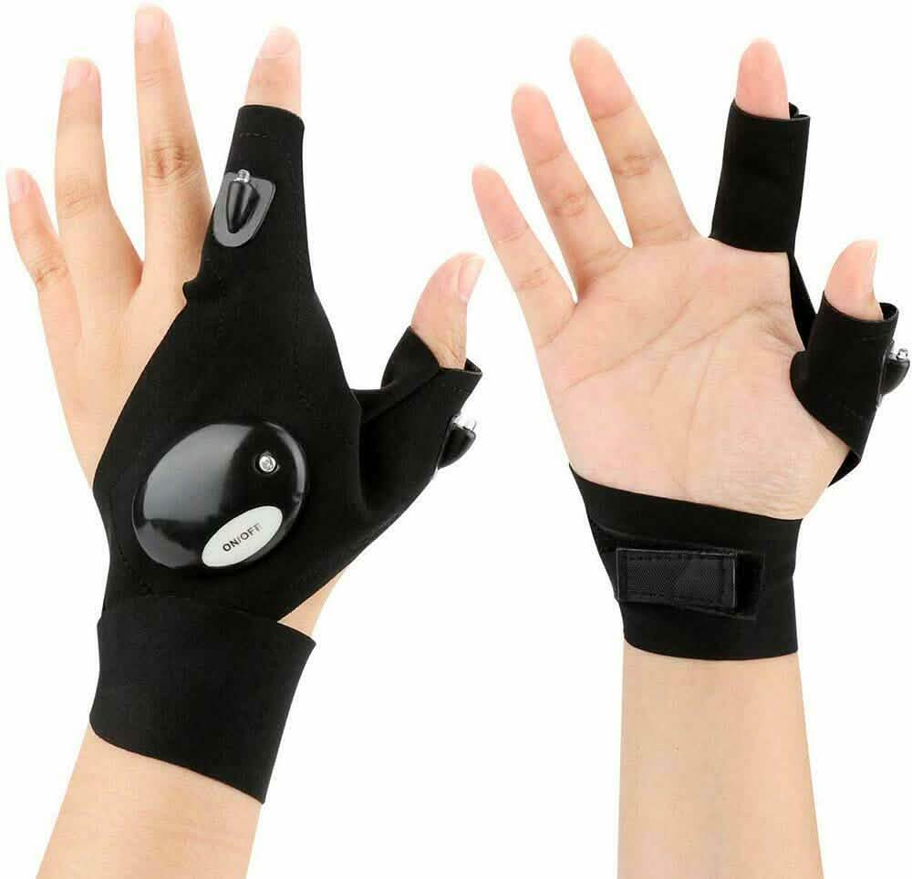 Fingerless LED Flashlight Gloves Auto Repair Fishing Hiking