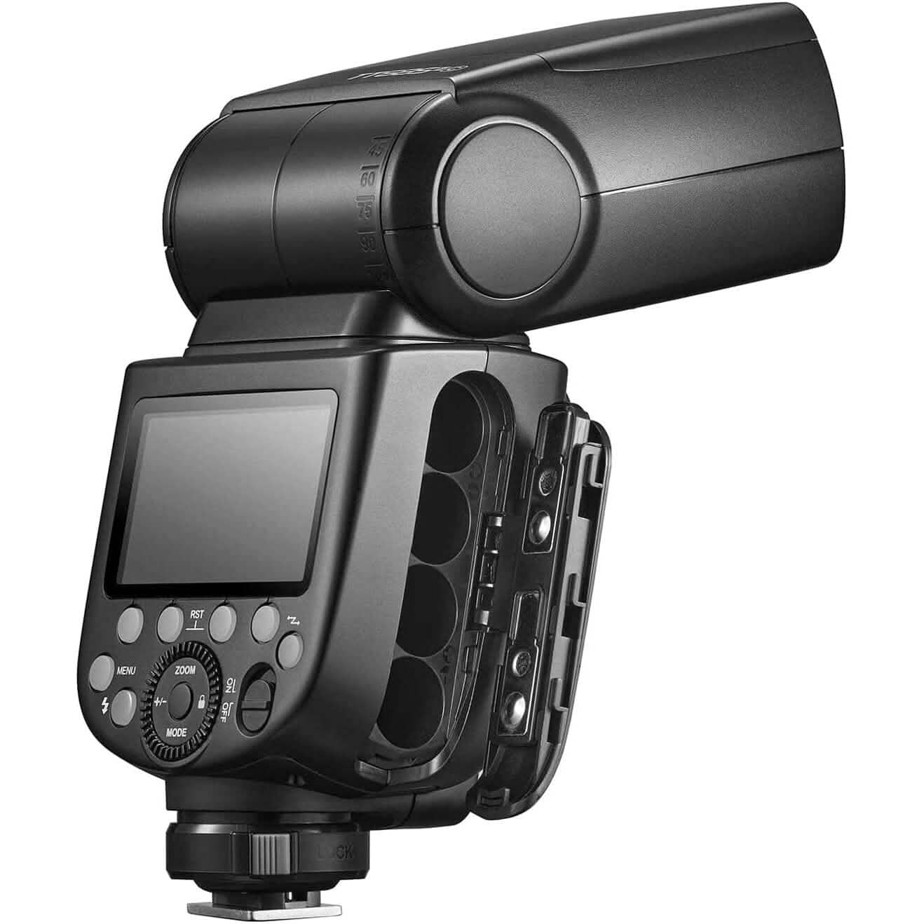 - Swinging / tilting flash head (bounce flash): 0-330°horizontally and -7°-120°vertically