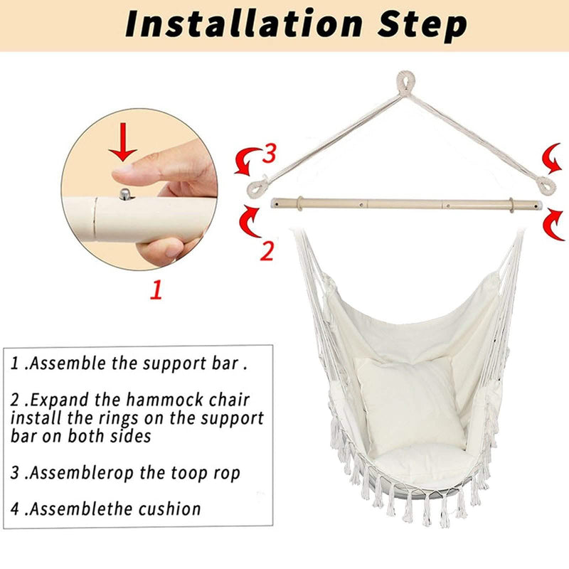 - High-Quality & Stylish Design: Designed with high-quality cotton canvas fabric, strong cotton ropes, and a detachable metal support bar with groves on each end, the hammock chair is more stable and durable. You don't have to worry about any security issues, just relax and enjoy it wherever you go.