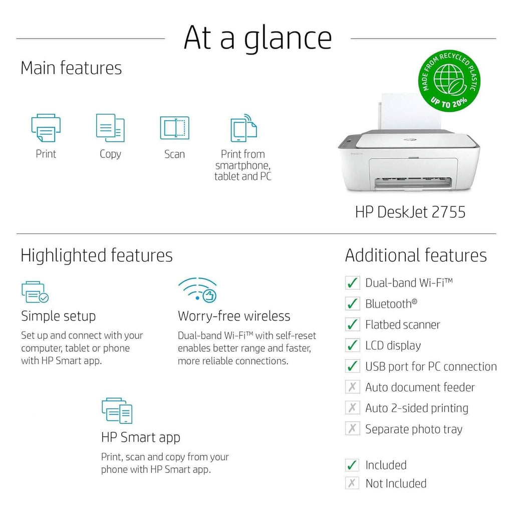 HP DeskJet 2755 All-in-One Inkjet Printer Scanner and Copier (Refurbished)