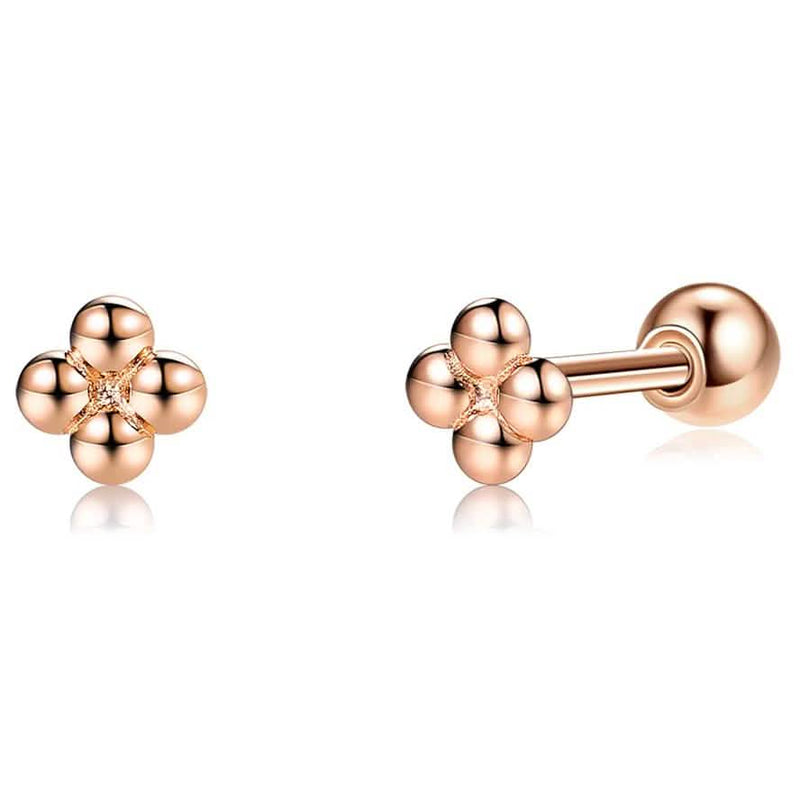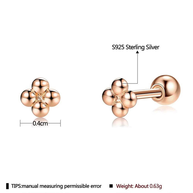 INALIS 925 Sterling Silver Minimalist Small Cute Stud Cross Flower Earrings