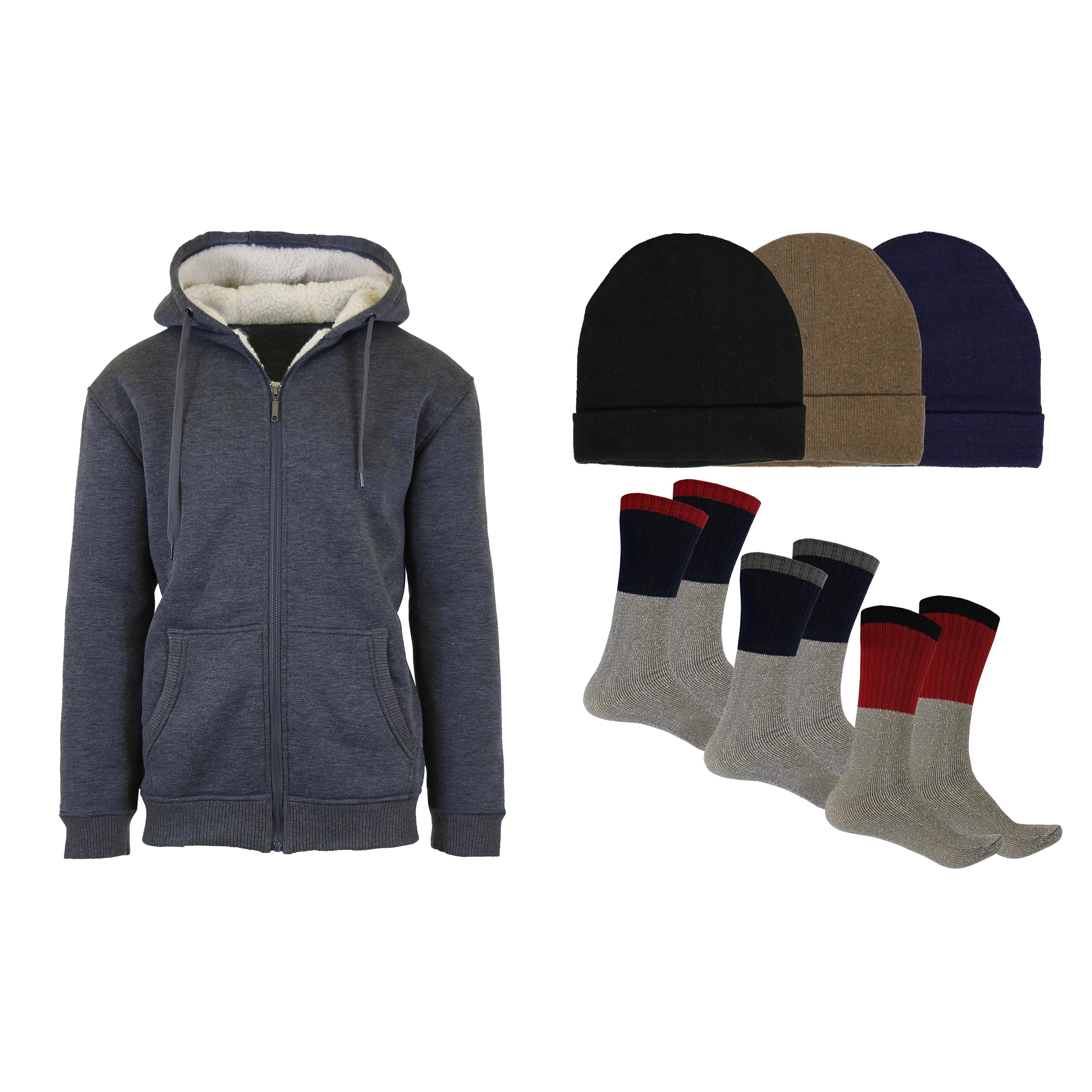 Men's Sherpa Hoodie, Fleece Lined Hat and Thermal Socks Gift Set