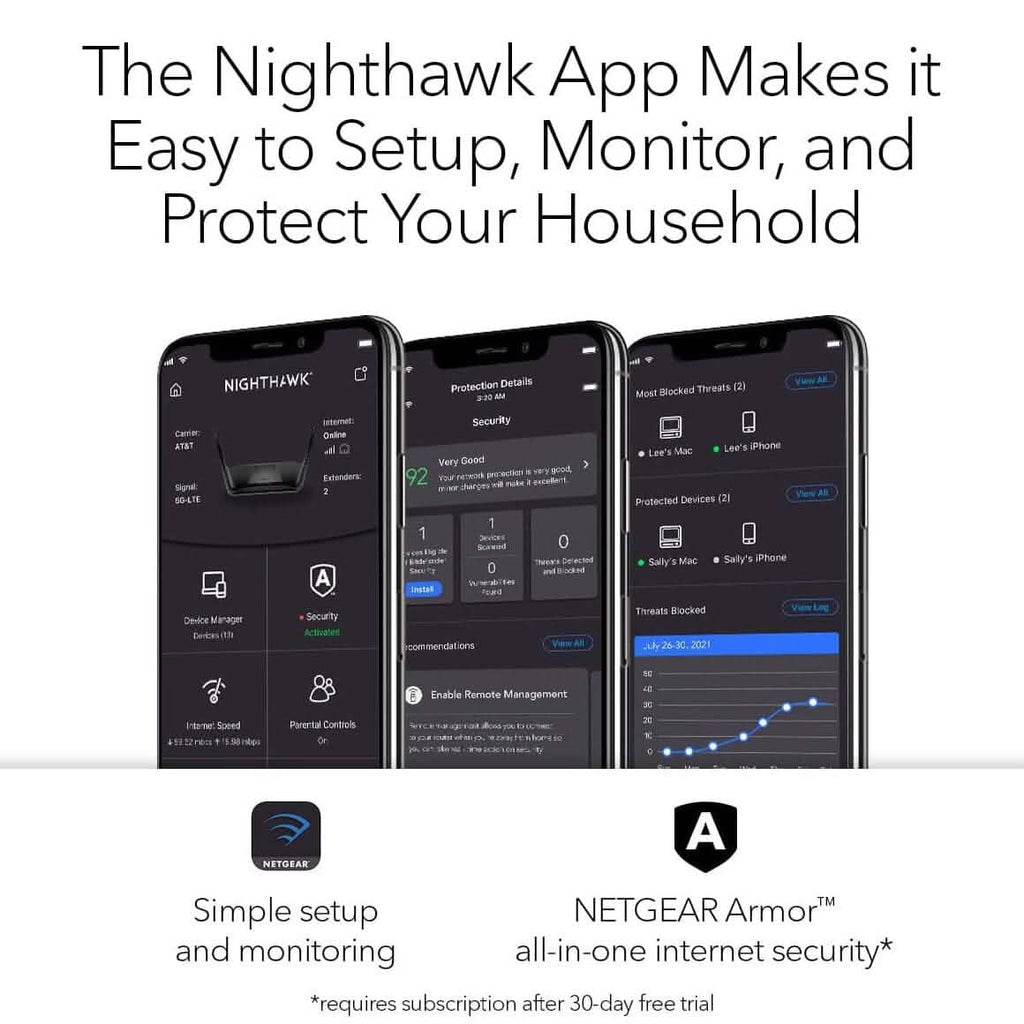 - NETGEAR ARMOR protects your family's WiFi with an automatic shield of security across all your connected devices with a 30-day free trial.