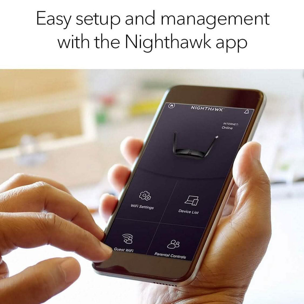 - EASY TO SET-UP AND MANAGE: Connects to your existing cable modem and sets up & customizes in minutes with the Nighthawk app – easily manage WiFi settings at the device and network level, test your Internet speed, view speed history & monitor data usage.