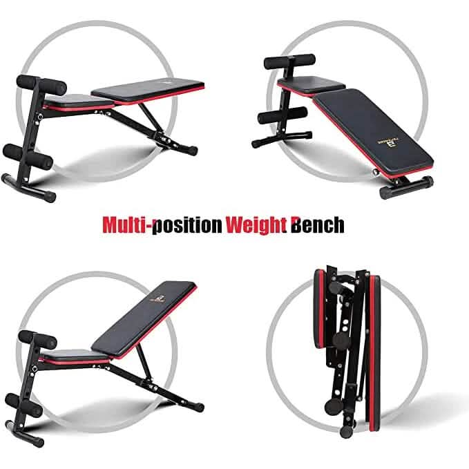- MULTIFUNCTIONAL FOLDABLE WEIGHT BENCH: Don't need to worry about finding a gym anymore, with this gym bench, you can enjoy a high-quality healthy life anytime, anywhere. easy