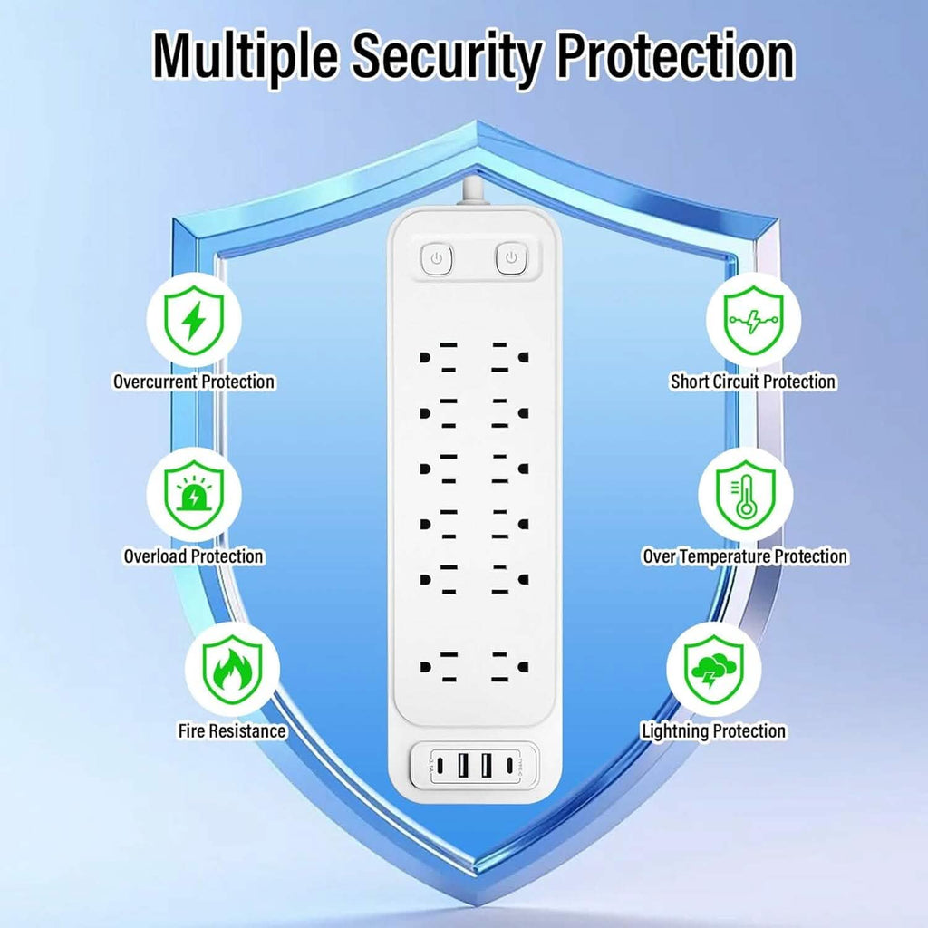 This power strip with surge protector extension cord offers multiple outlets and reliable protection against sudden surges. Keep all your devices powered and safe with this essential accessory. Perfect for home or office use, providing convenience and peace of mind.
