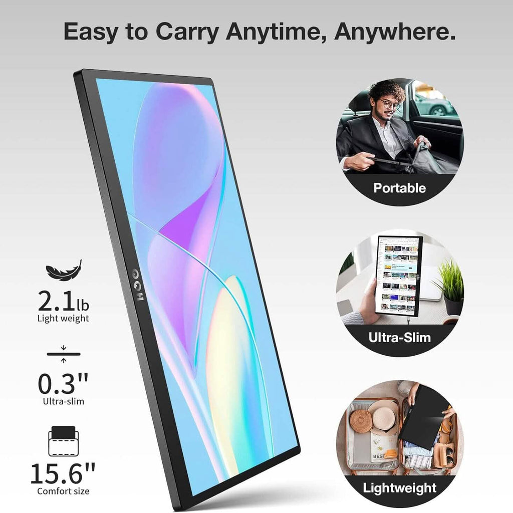Get the ultimate portable viewing experience with the QQH 15.6" 1080P IPS Portable Monitor. Enjoy crystal clear visuals and expand your laptop or phone screen on-the-go. This refurbished monitor is perfect for travel and features USB-C and HDMI connectivity options. Enhance your productivity and entertainment with this versatile external monitor.
