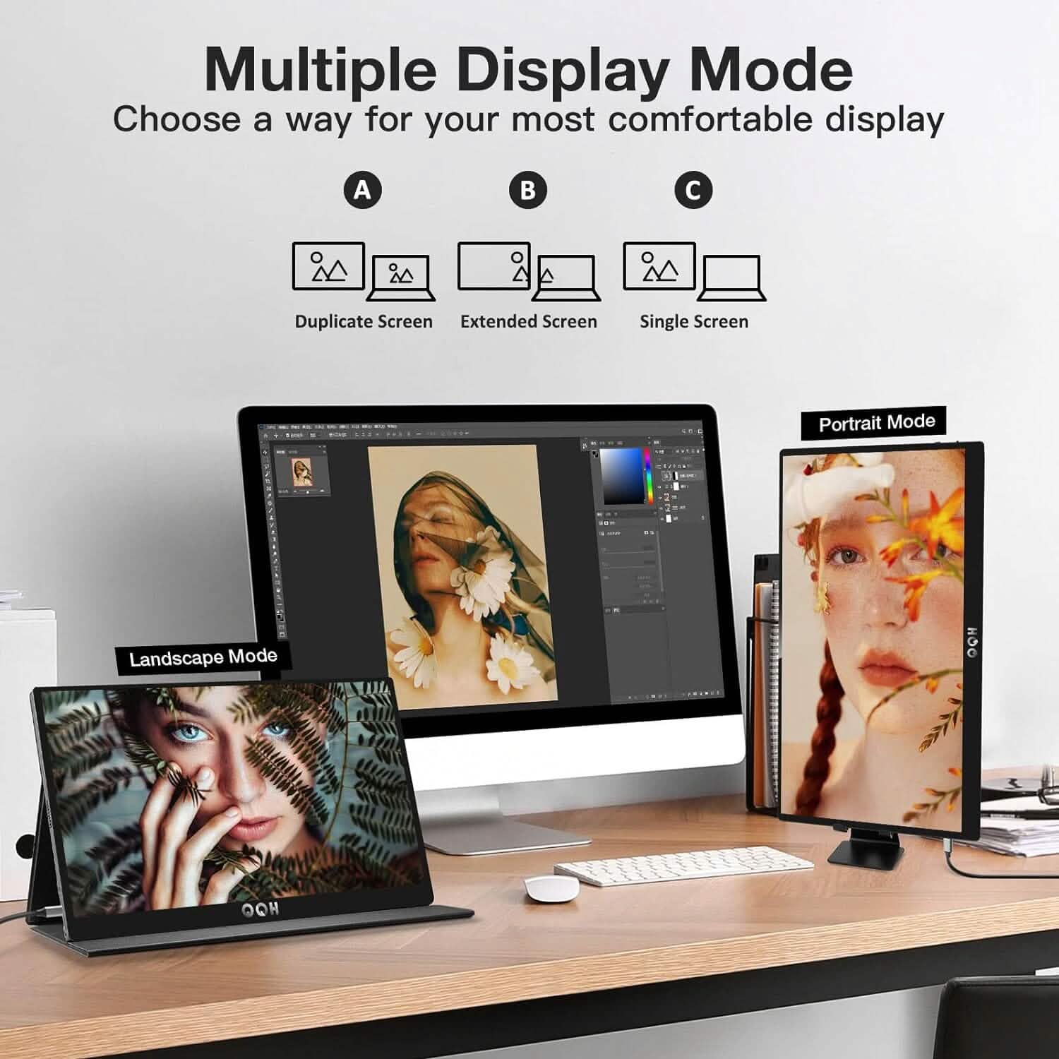 - Use Kickstand for Multiple Modes: This USB C laptop monitor with Duplicate Mode/ Extend Mode/ Second Screen Mode/ Portrait Mode/ Landscape Mode. Comes with a foldable kickstand, super easy and open to use as whatever you want. Extra equipped with 3.5mm audio inputs, a really convenient design. Make your life more excellent.