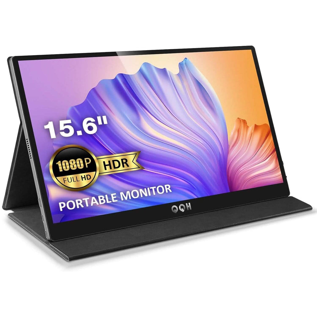 - FHD Portable Monitor: QQH 15.6-inch portable screen for laptop, with 1920*1080 resolution, more realistic, vivid image & video. 60Hz IPS LCD screen. The HDR mode enhances the color of your gaming world. Low blue light 0-100 adjustable, increase for eyes-care, no flickering/stuck, easier to deal with your multi-work, studying, entertainment.
