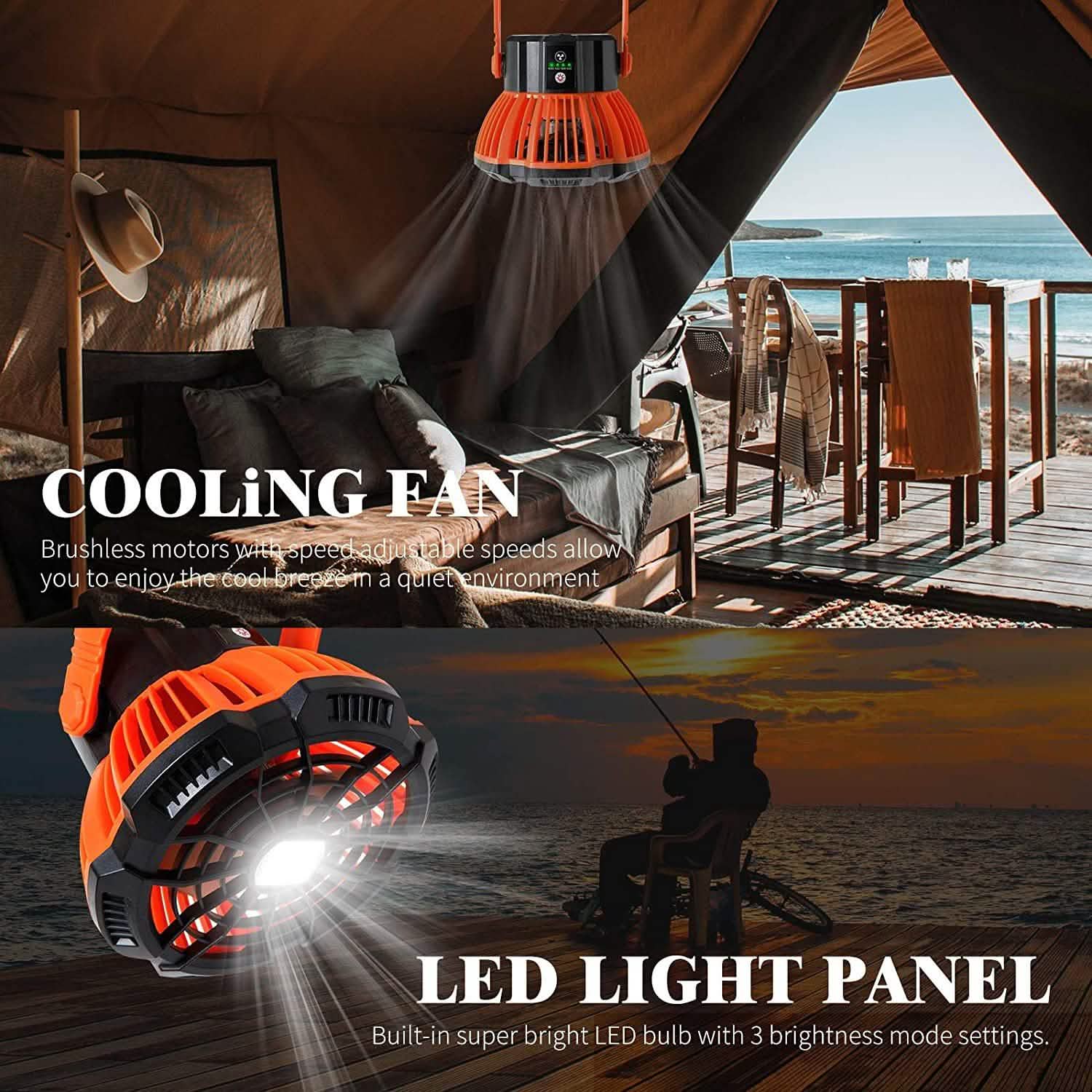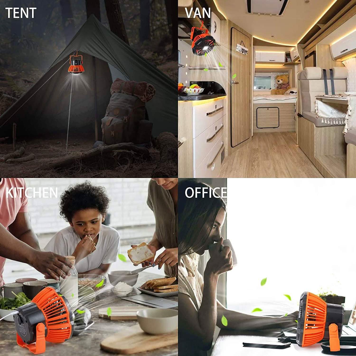 - 2-in-1 Tent Fan And Lantern: The camping fan has 3-speed level settings to meet your different needs for airflow. While bringing strong wind power, it can be quiet, energy-saving, and stable for a long time. In addition, the middle part of this desktop fan is designed with a LED light, with 3 brightness mode settings, which can be used in tents at night.