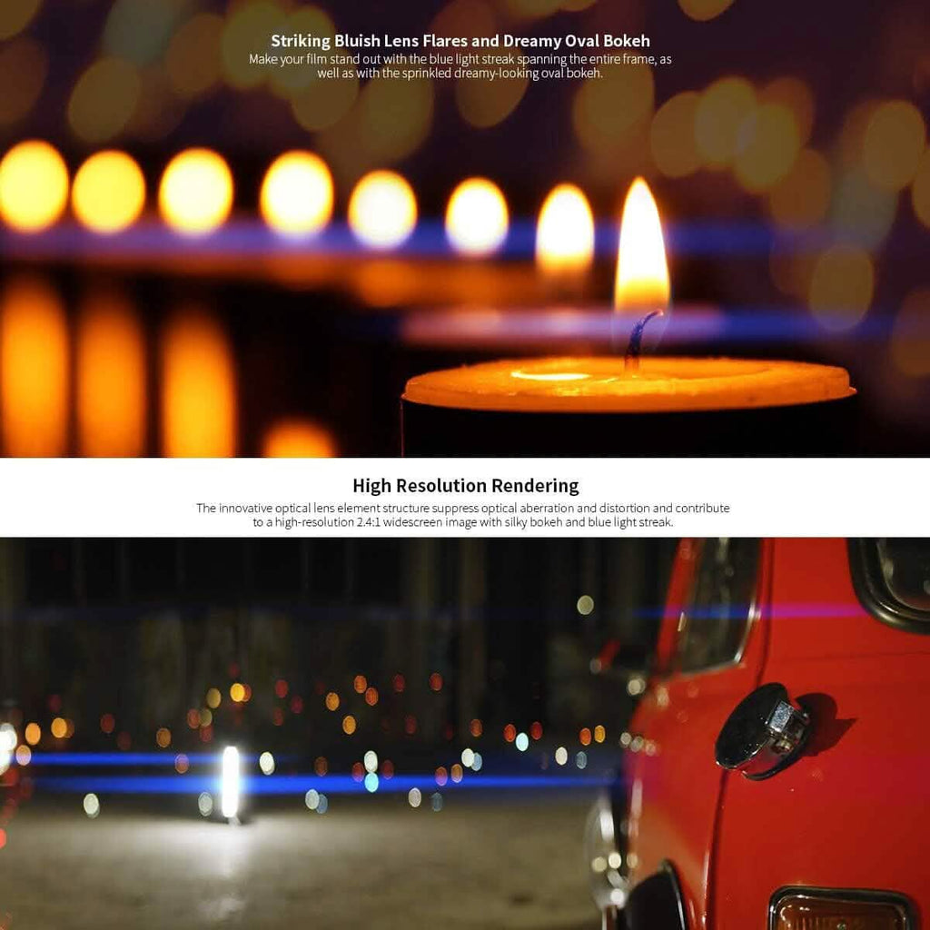 - Not just for video use, this lens allows you to distinguish your photo from a standard 16:9 photo, with all the noticeable anamorphic elements including a spectacular 2.4:1 rectangular look, blue light streak, and oval bokeh.