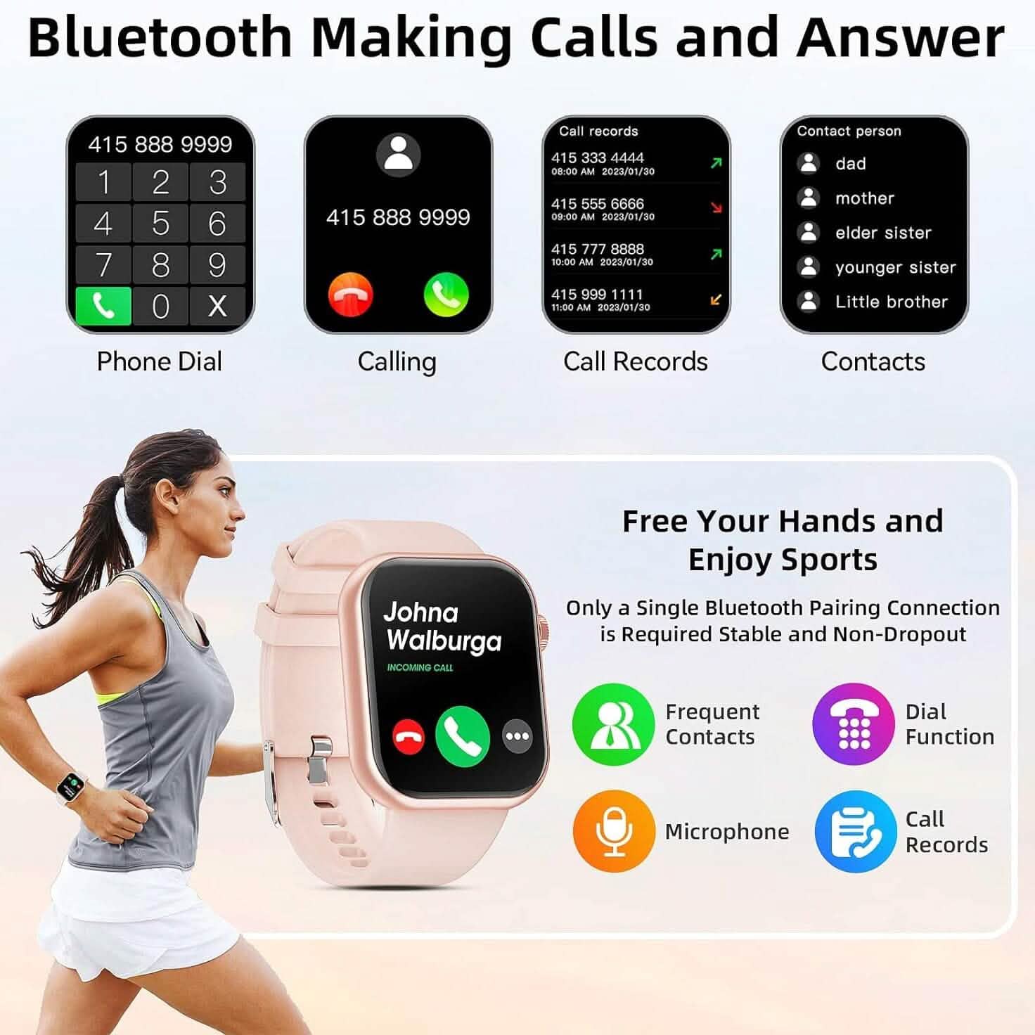 - Connecting this smartwatch with your phone, you can receive notifications of Facebook, WhatsApp, Instagram, Twitter and more, even hang up incoming calls. It will never let you miss any important things. Also there are many convenient functions like Timer, Stopwatch, Find device, Sedentary Reminder, Music Control and Weather Display.