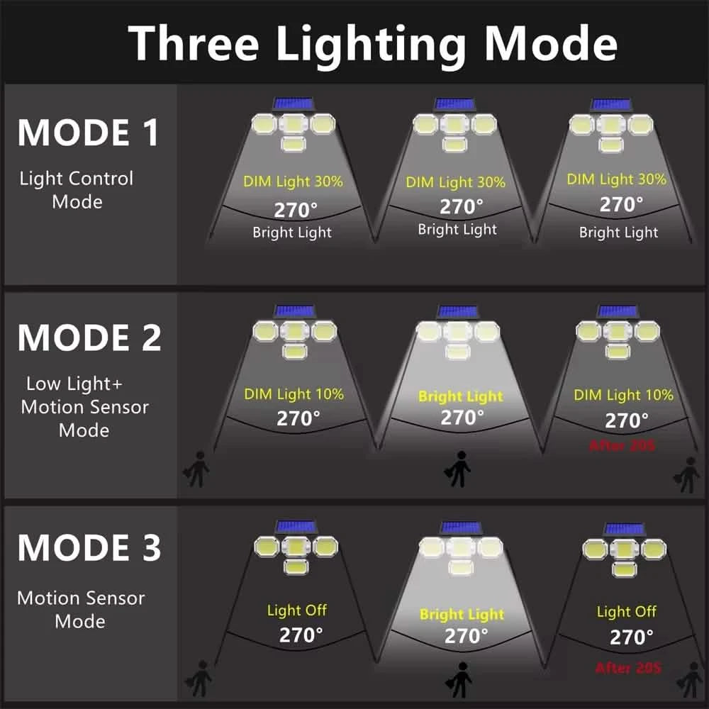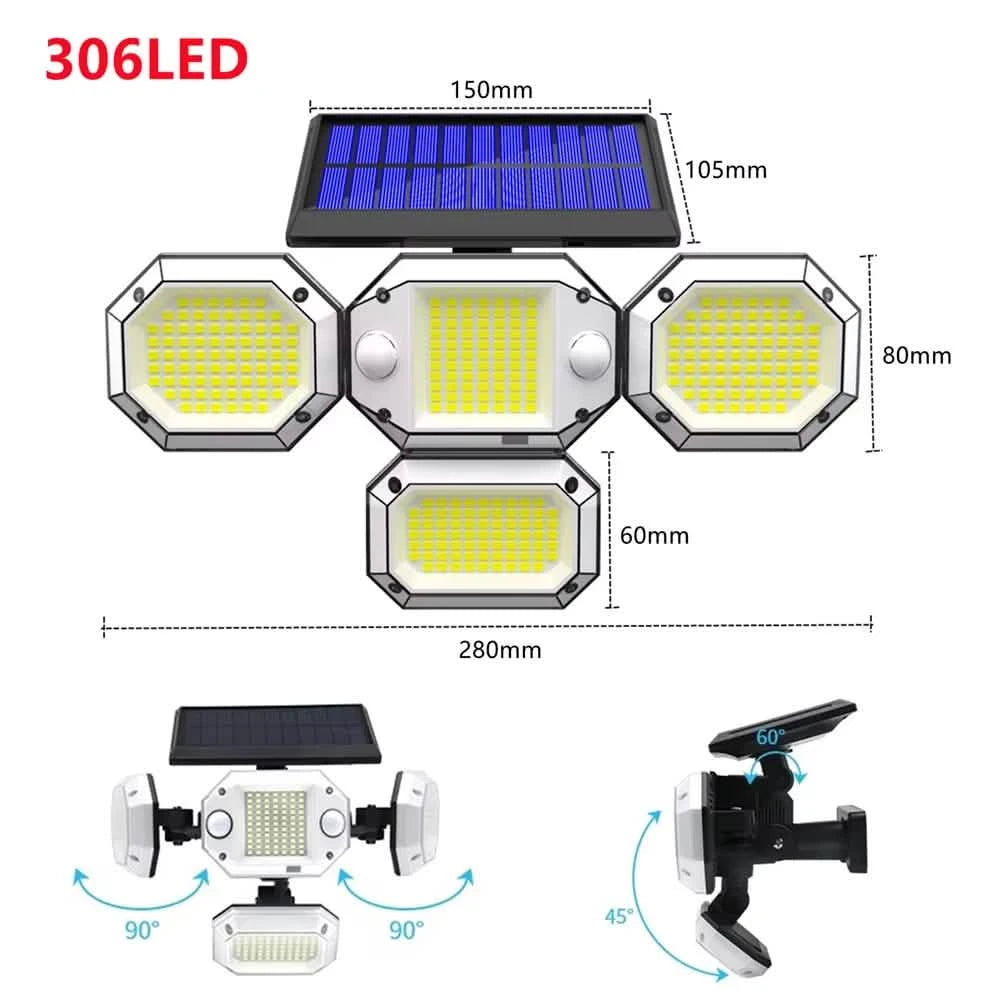 Featuring 306 or 208 high-brightness LEDs, this solar-powered wall lamp delivers powerful illumination, making it ideal for garages, porches, pathways, and gardens. Its IP65 waterproof rating guarantees reliable operation in various weather conditions, providing peace of mind no matter the climate.