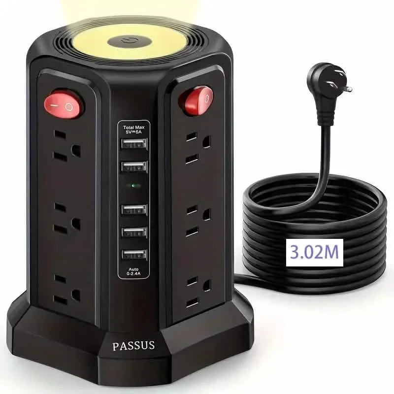 Surge Protector Tower 1800J with 4 USB A Ports, USB C (PD18W) Port, 12 AC Outlets and 10FT Cord