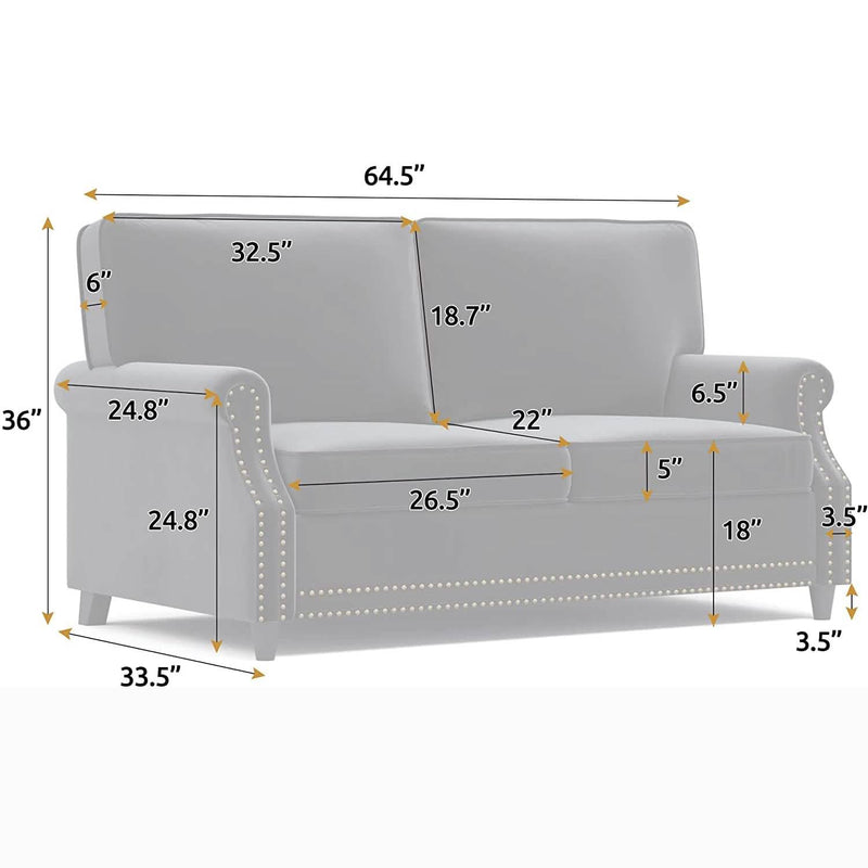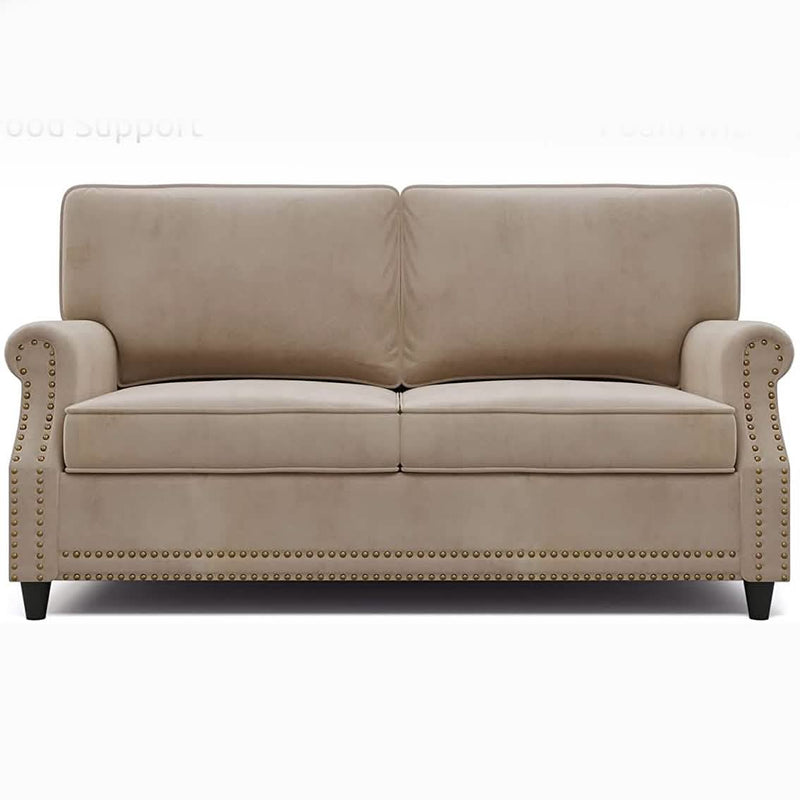 Velvet Roll Up Arm Chair Loveseat with Nail Head