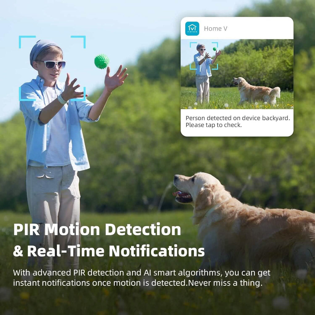 - With advanced PIR detection and Al smart algorithms, you can get instant notifications once suspicious motion is detected, and take action before anything bad happens. You can also set human, pet, or vehicle detection within the APP so that the camera intelligently helps reduce unnecessary motions and focus on the most important activities.